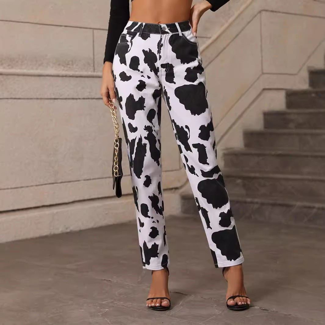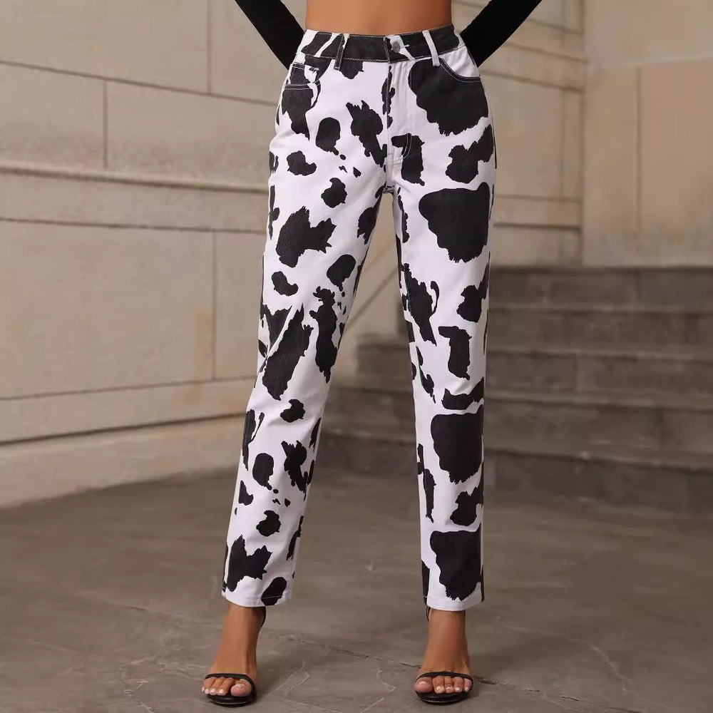 Dame casual jeans med iøynefallende dyreprint applique Skjora