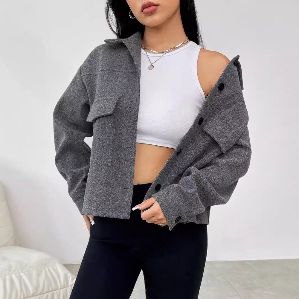 Dame casual oversized jakke med praktiske lommer og knapp-lukking Skjora