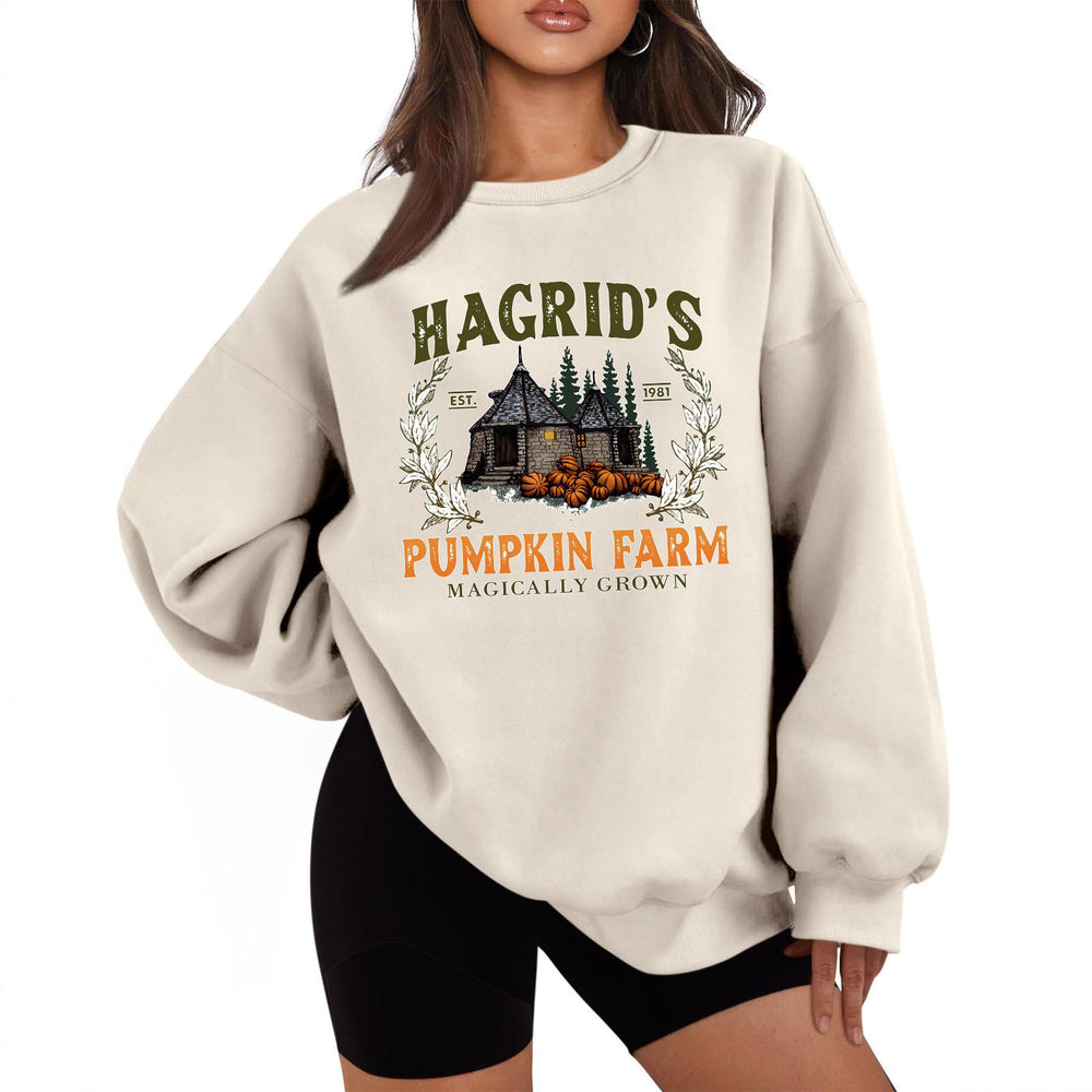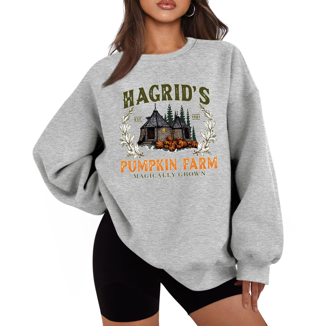Kvinnes sweatshirts med koselig rund hals og høstgresskarmotiv Skjora