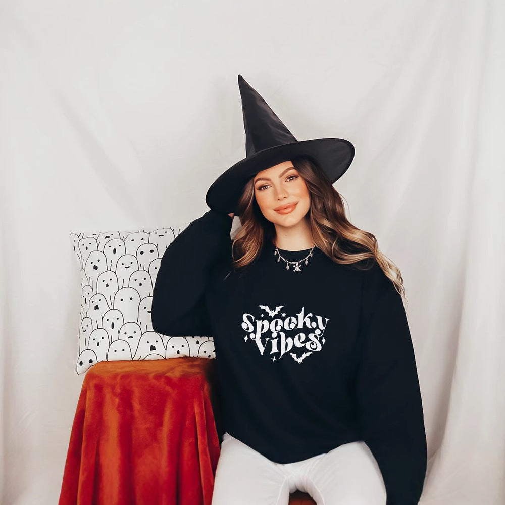 Kvinnes sweatshirt med leken Halloween-design og behagelig passform Skjora