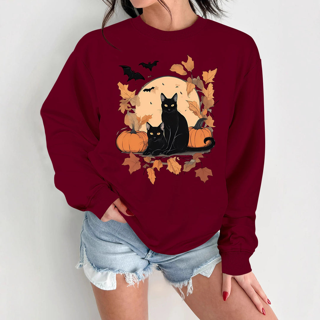 Kvinnes sweatshirts med høst katt og gresskar design Skjora