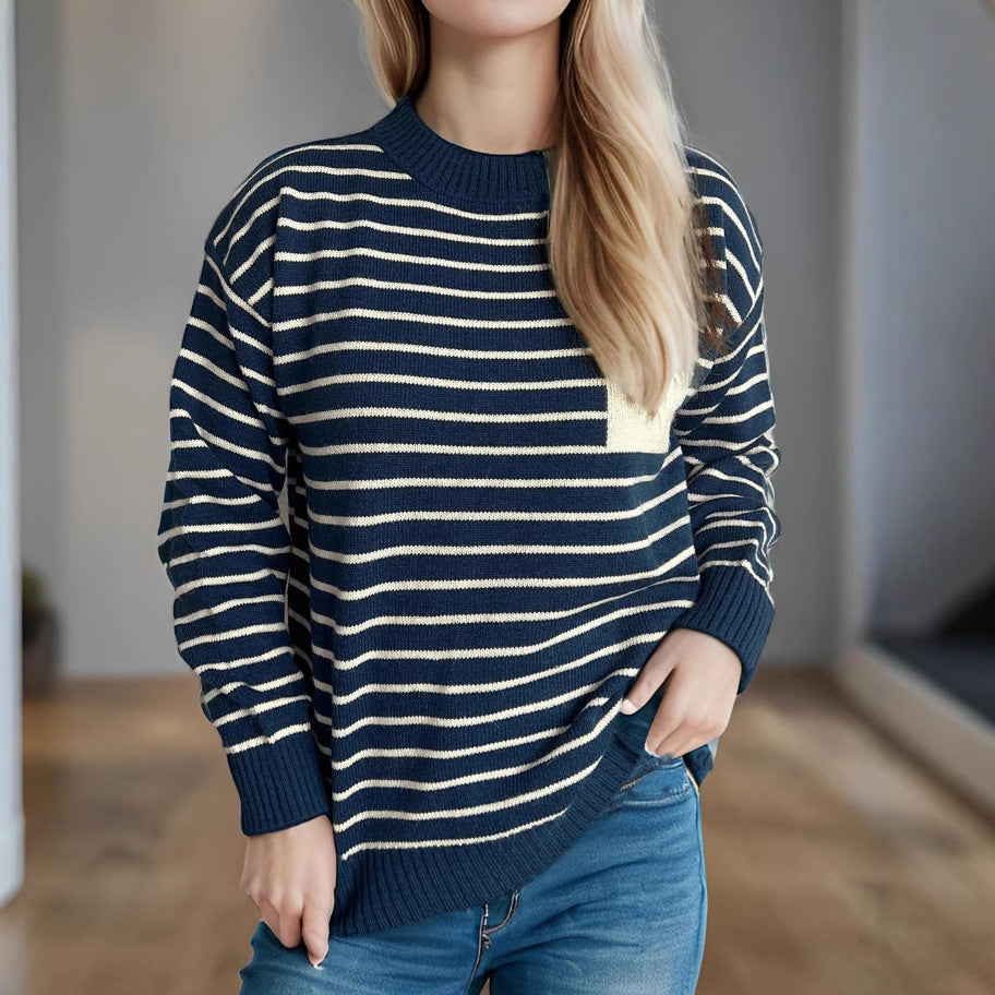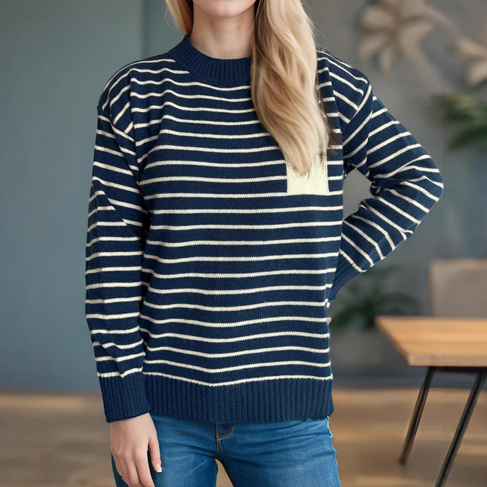 Kvinnes stripete genser med en avslappet passform og vide ermer Skjora