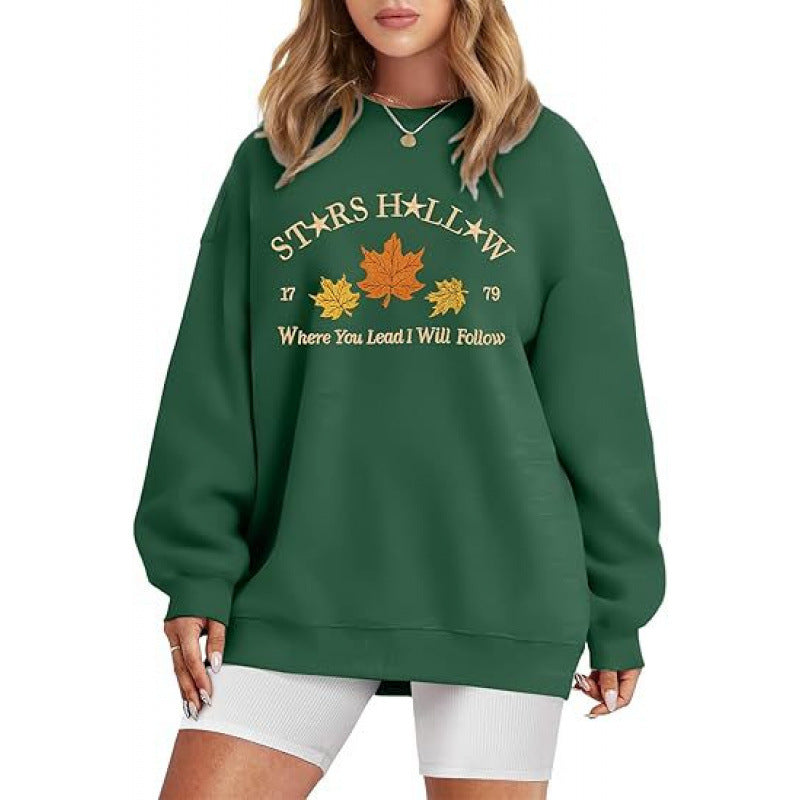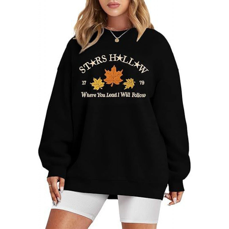 Kvinnes sweatshirt med løs passform og dekorativt høstmotiv Skjora