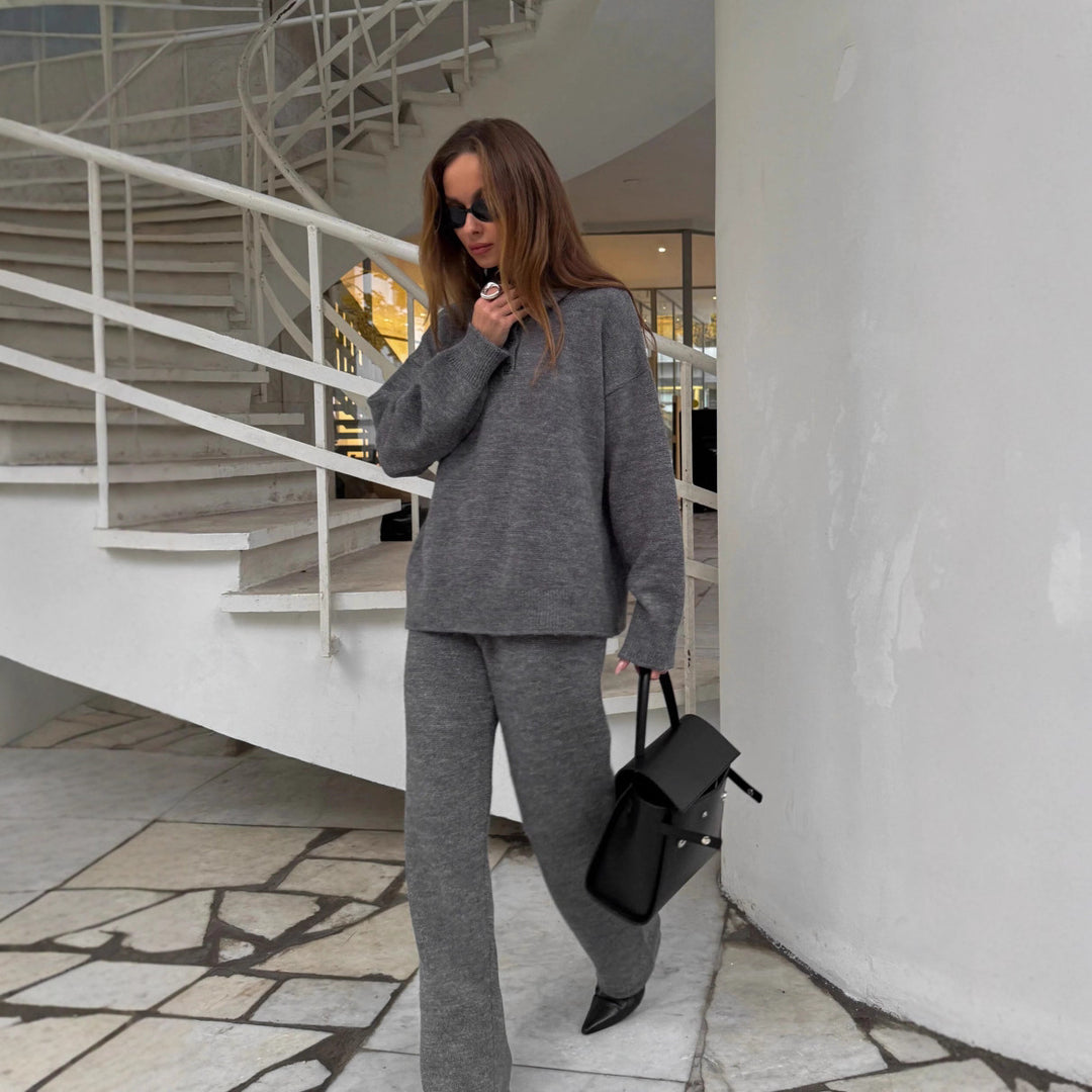 Kvinnes strikket loungewear-sett med elegant snitt og behagelig mykt materiale Skjora