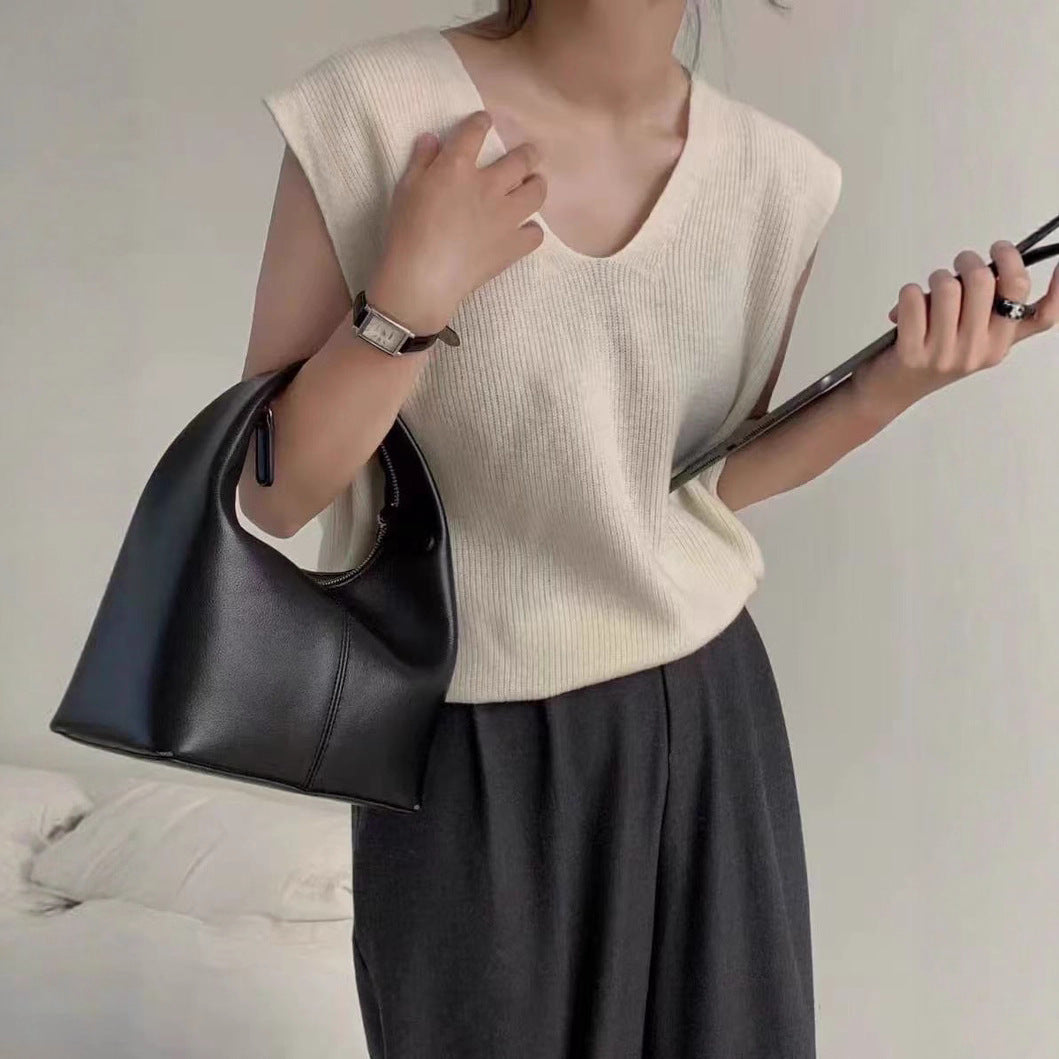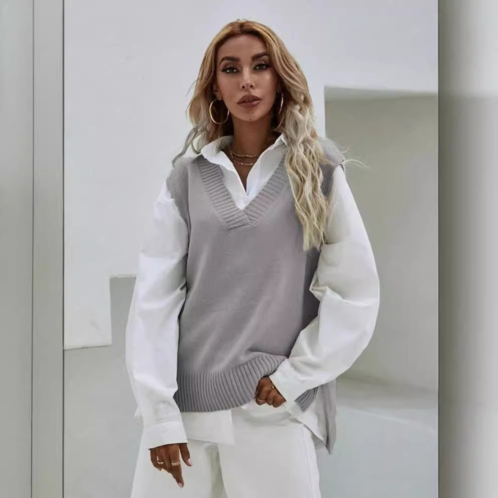 Kvinnes strikket vest med dyp V-hals og luftig passform Skjora