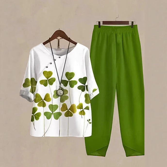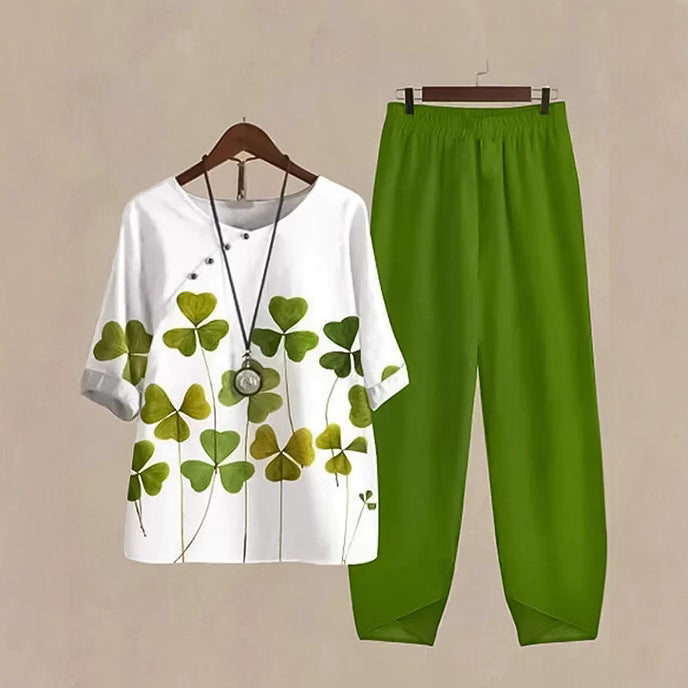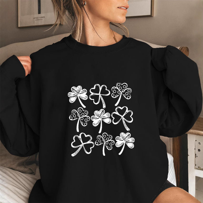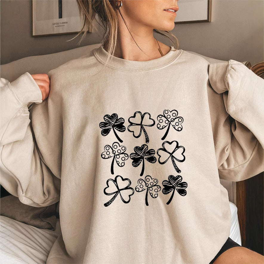 Kvinnes sweatshirt med leken kløvermotiv Skjora
