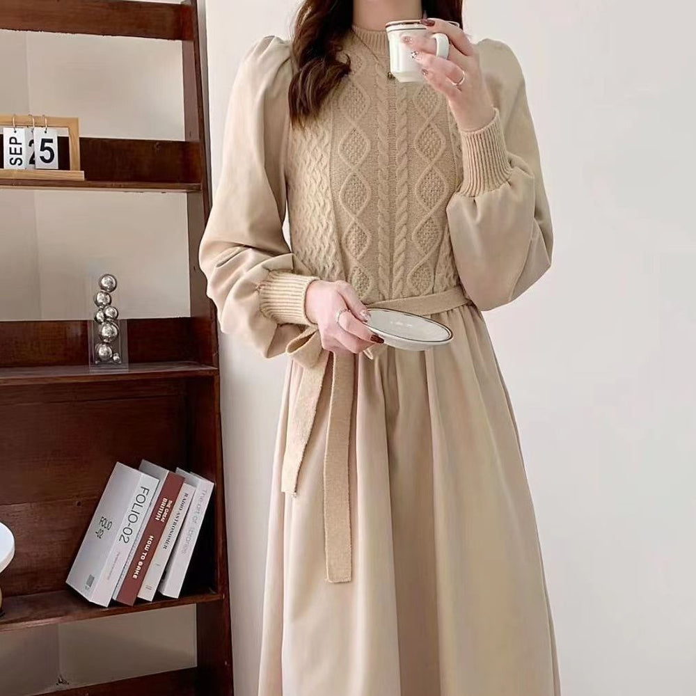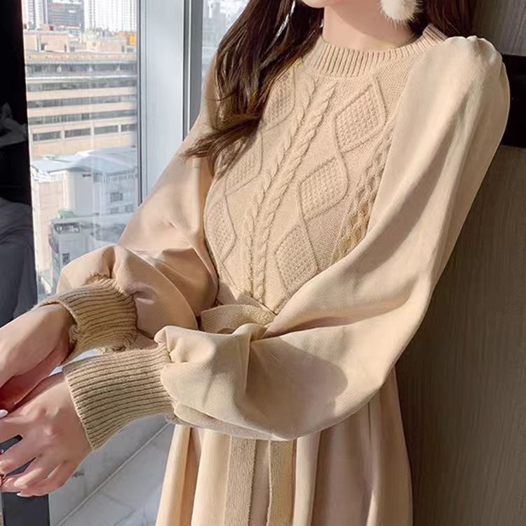 Kvinnes strikket kjole med voluminøse ermer og strukturert topp Skjora