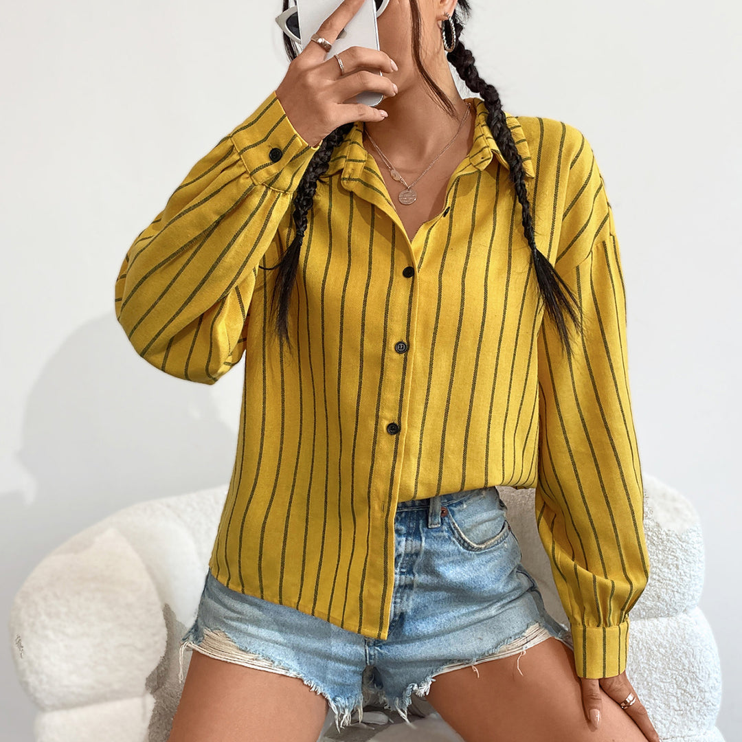 Kvinnes stripete skjorte bluse med lett stoff og behagelig passform Skjora