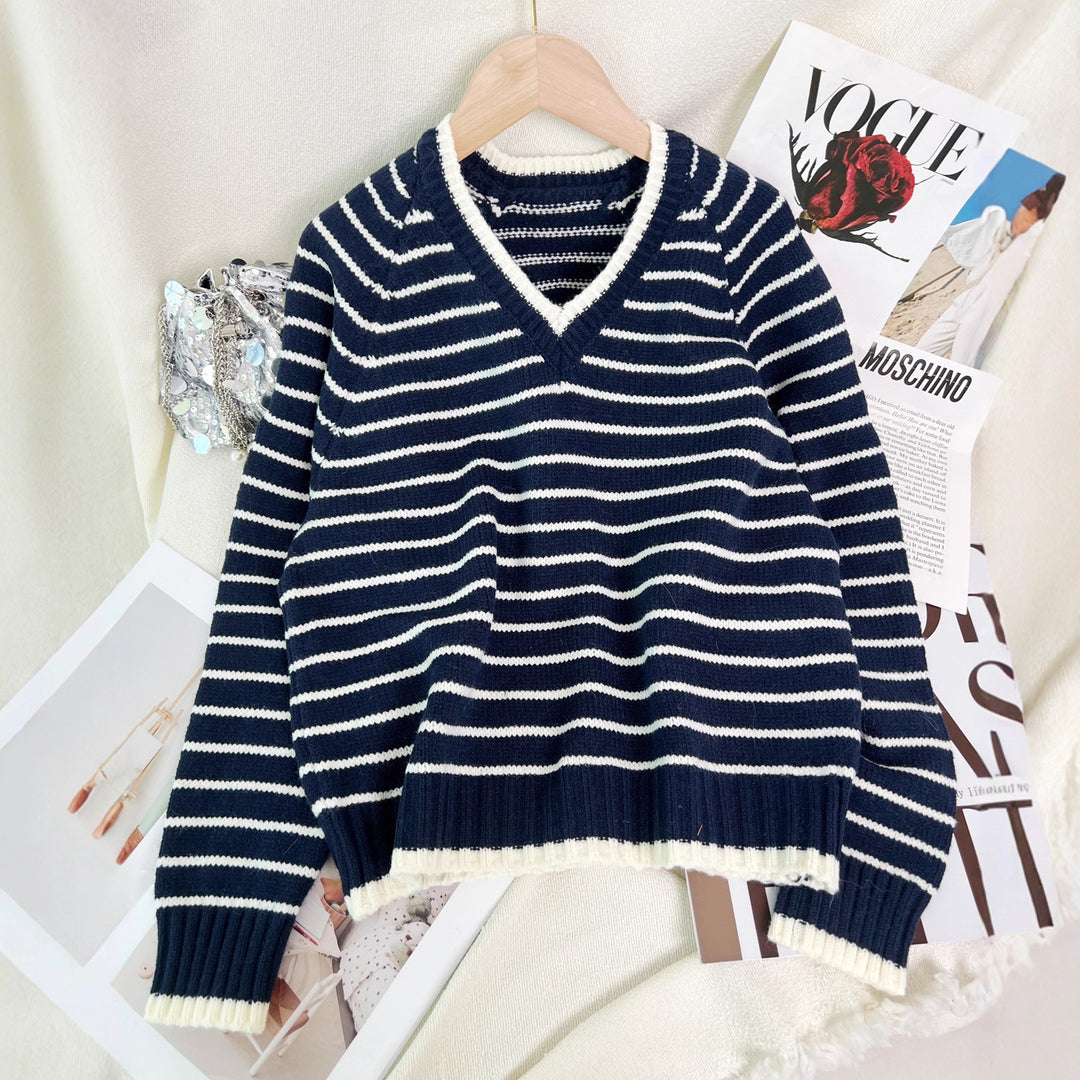 Kvinnesstripet V-hals genser i uformell stil Skjora