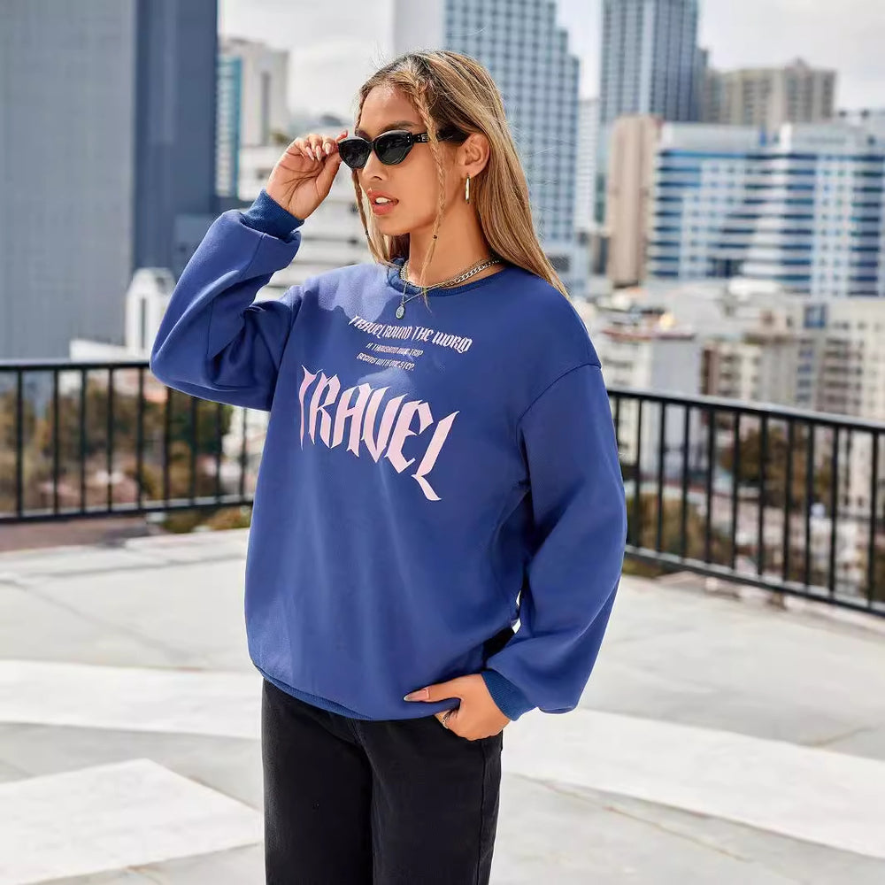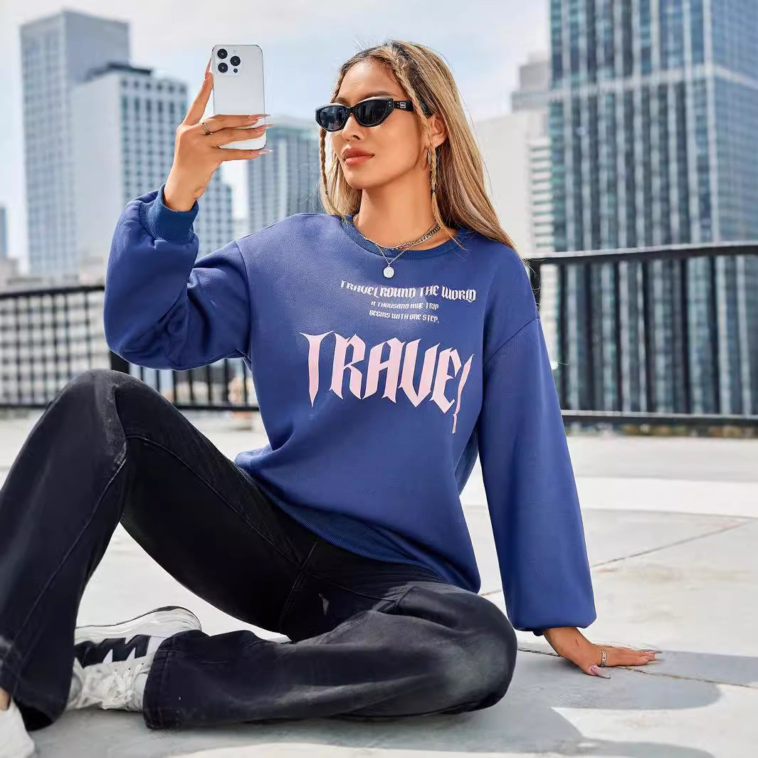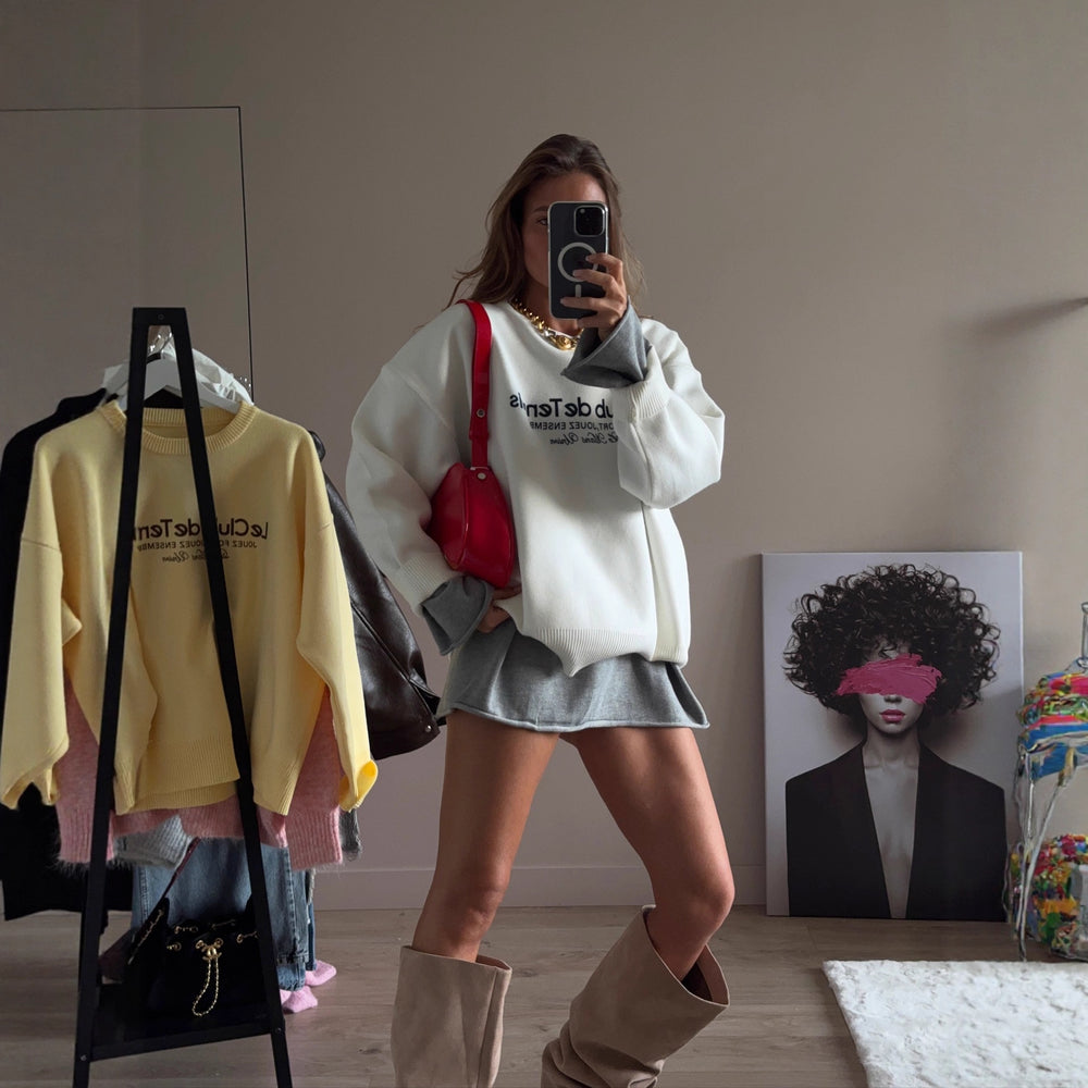 Kvinnesvetter med kunstnerisk skrift og uformell passform Skjora