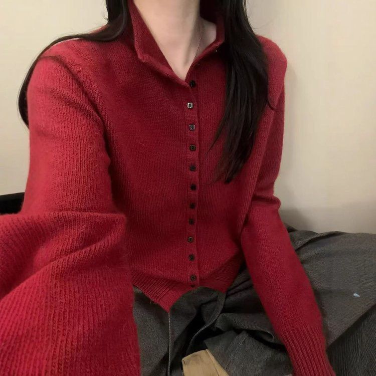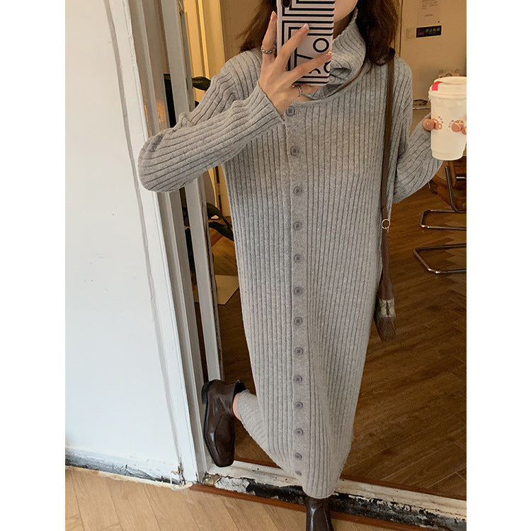 Kvinnesk knitted kjole med høy krage og knappelukking Skjora