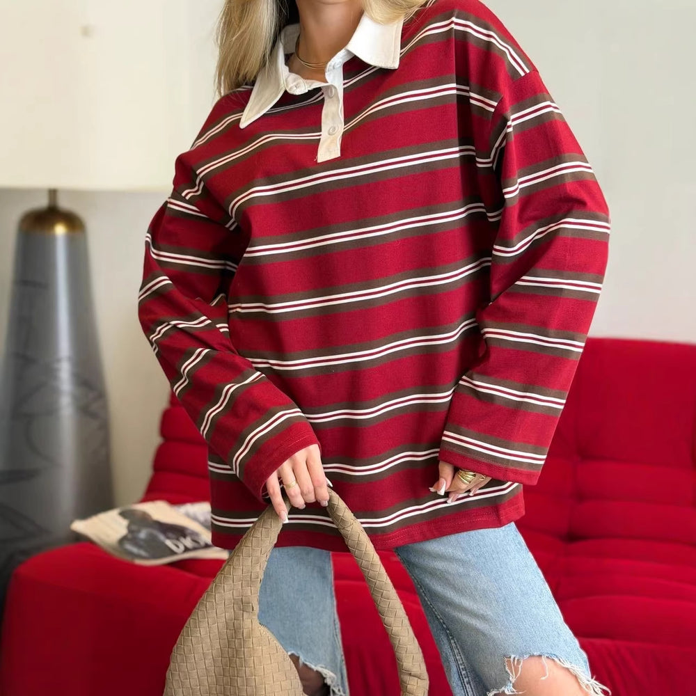 Kvinnestripet blusegenser med klassisk krage Skjora
