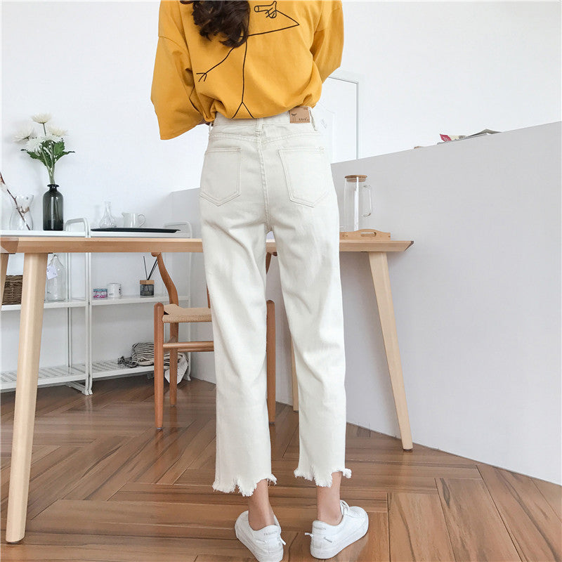 Dame Bredkutt Jeans med Slitt Kant Skjora