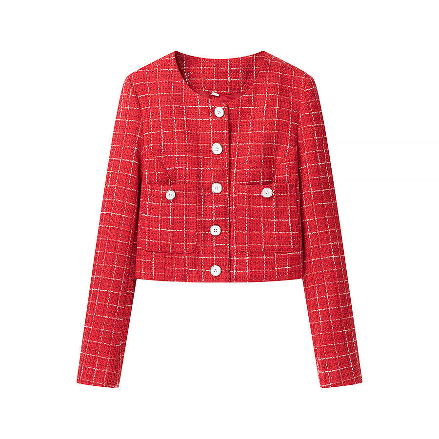 Dame Boucle Jakke i et elegant design med gullknapper Skjora
