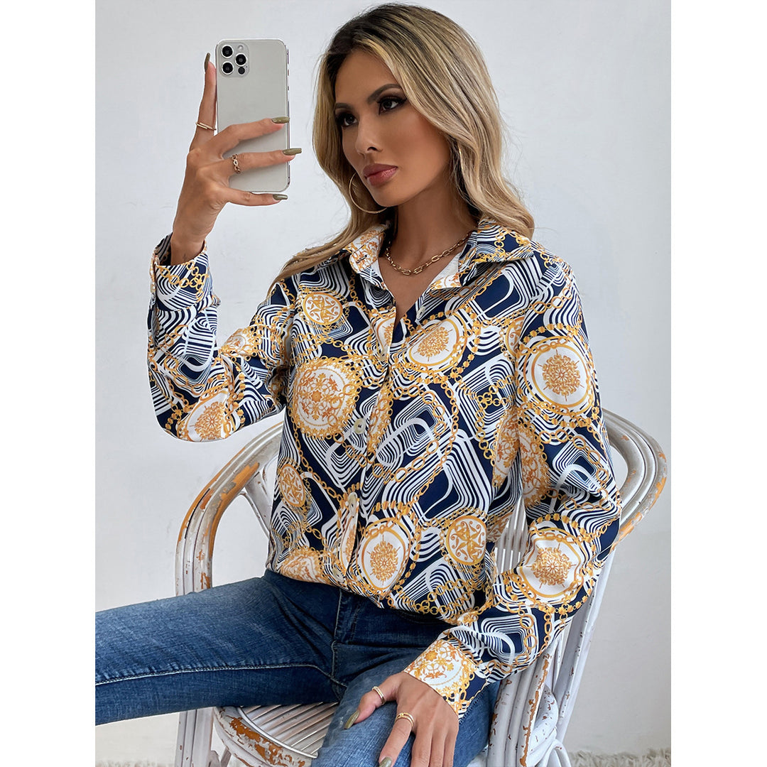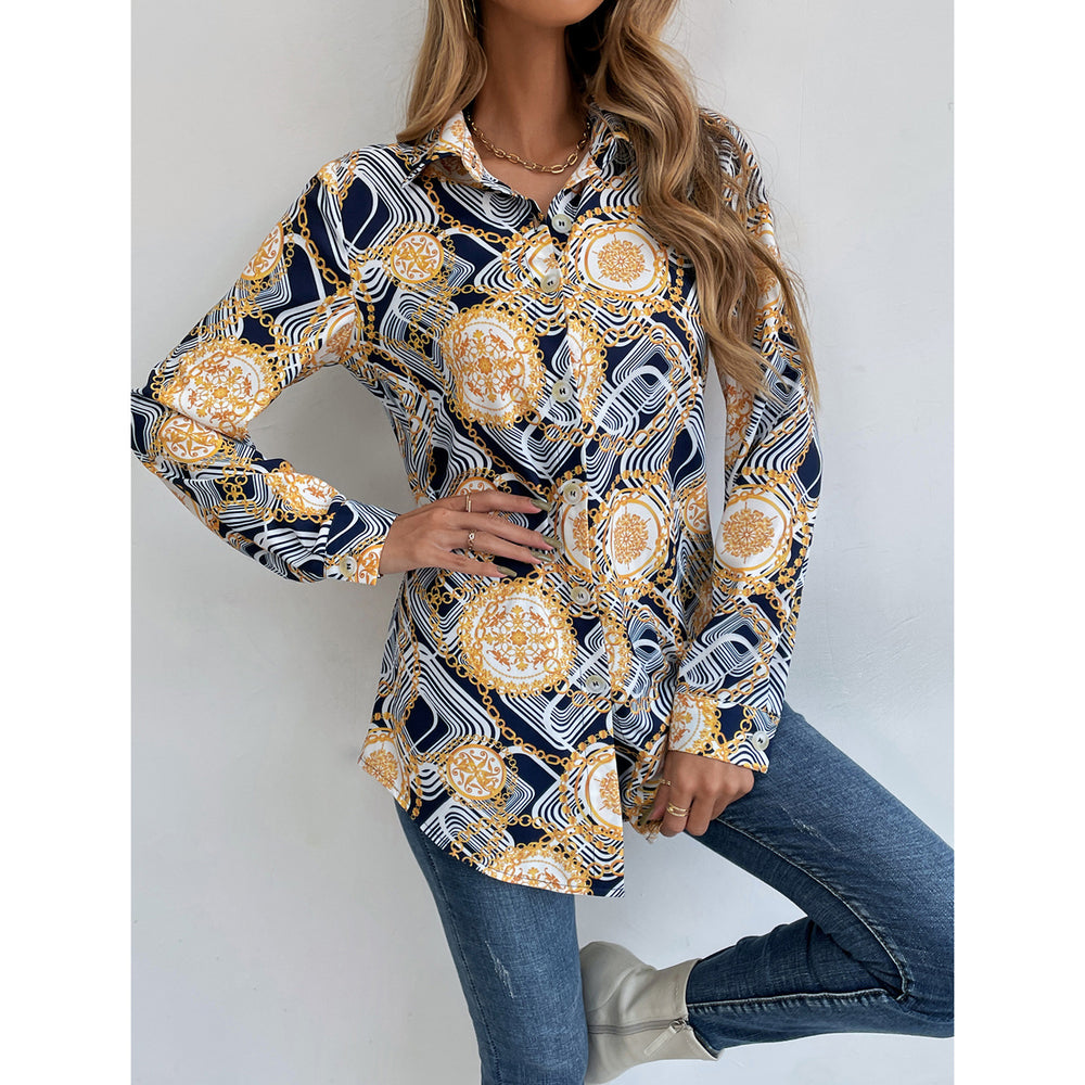 Dame blomstret skjorte med elegante langermet og knappekrage Skjora