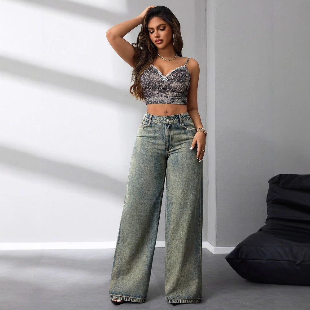 Dame brede høytaljede jeans i vintage stil med et avslappet utseende Skjora
