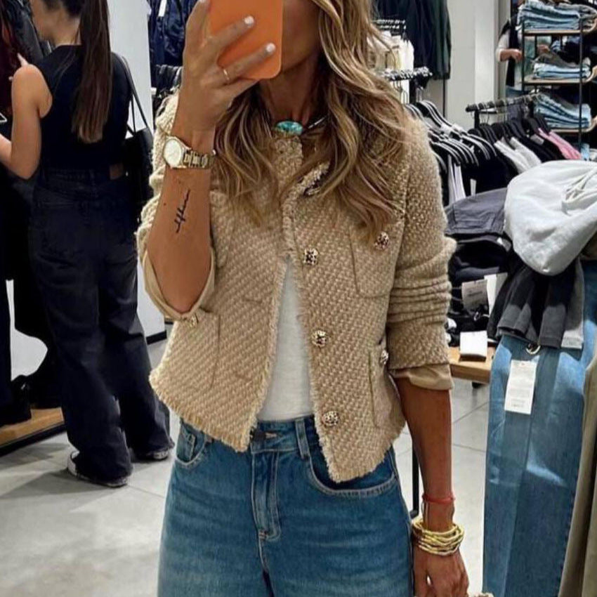 Dame Boucle Jakke med Elegante Knappe detaljer Skjora
