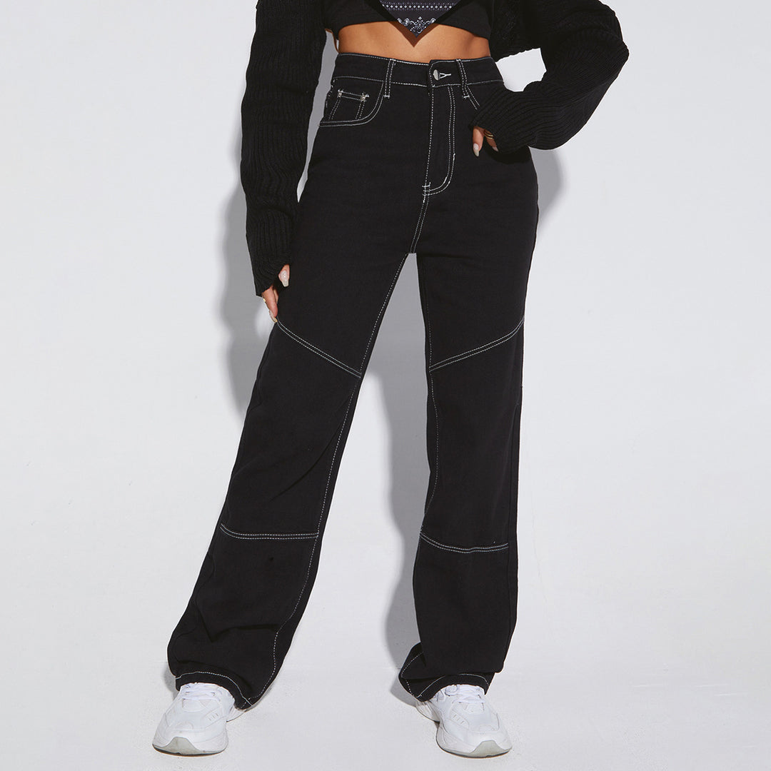 Dame brede høytlivsjeans med kontrasterende sømmer og stilig snitt Skjora