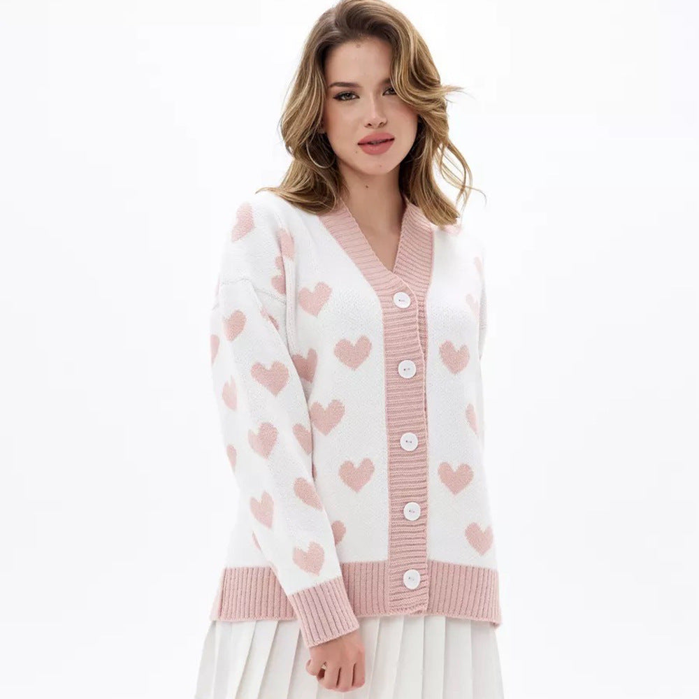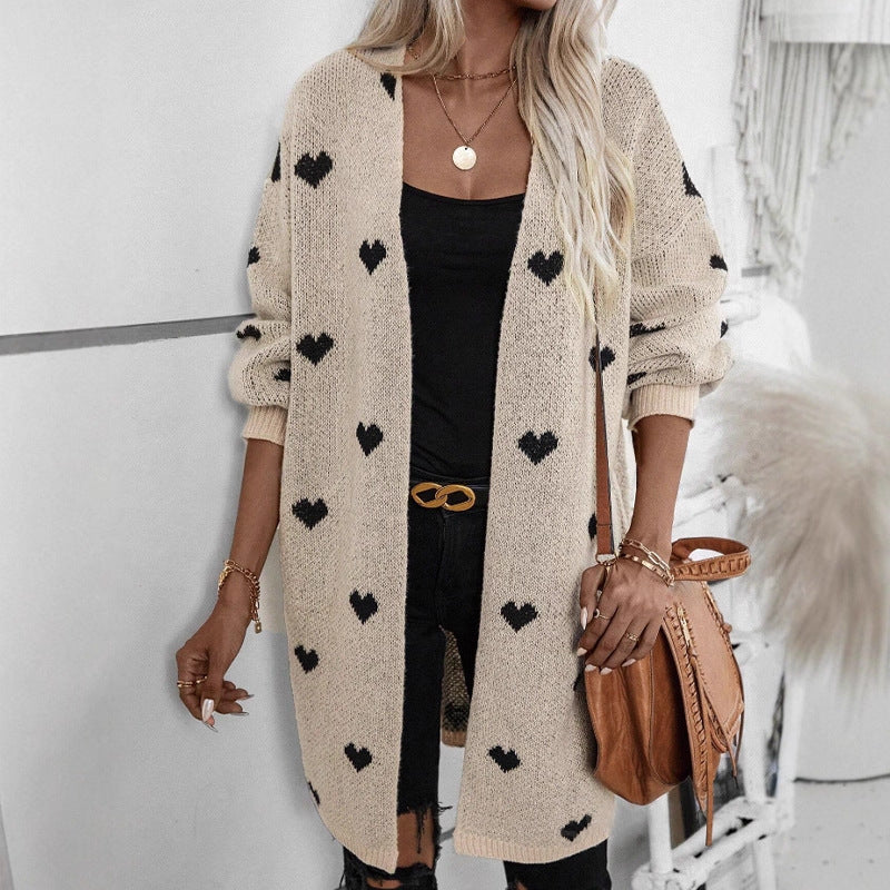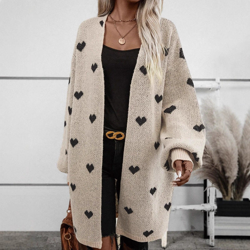 Dame cardigan med hjerte mønster og avslappet passform Skjora