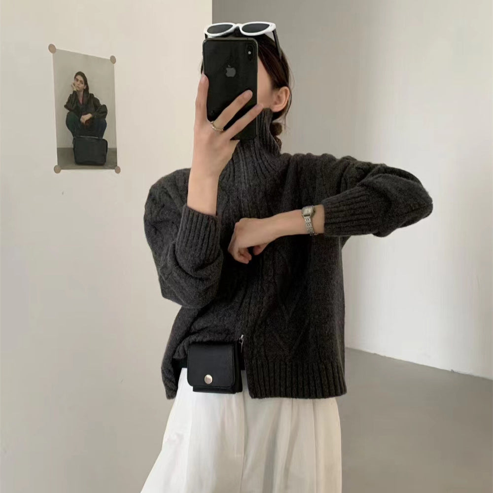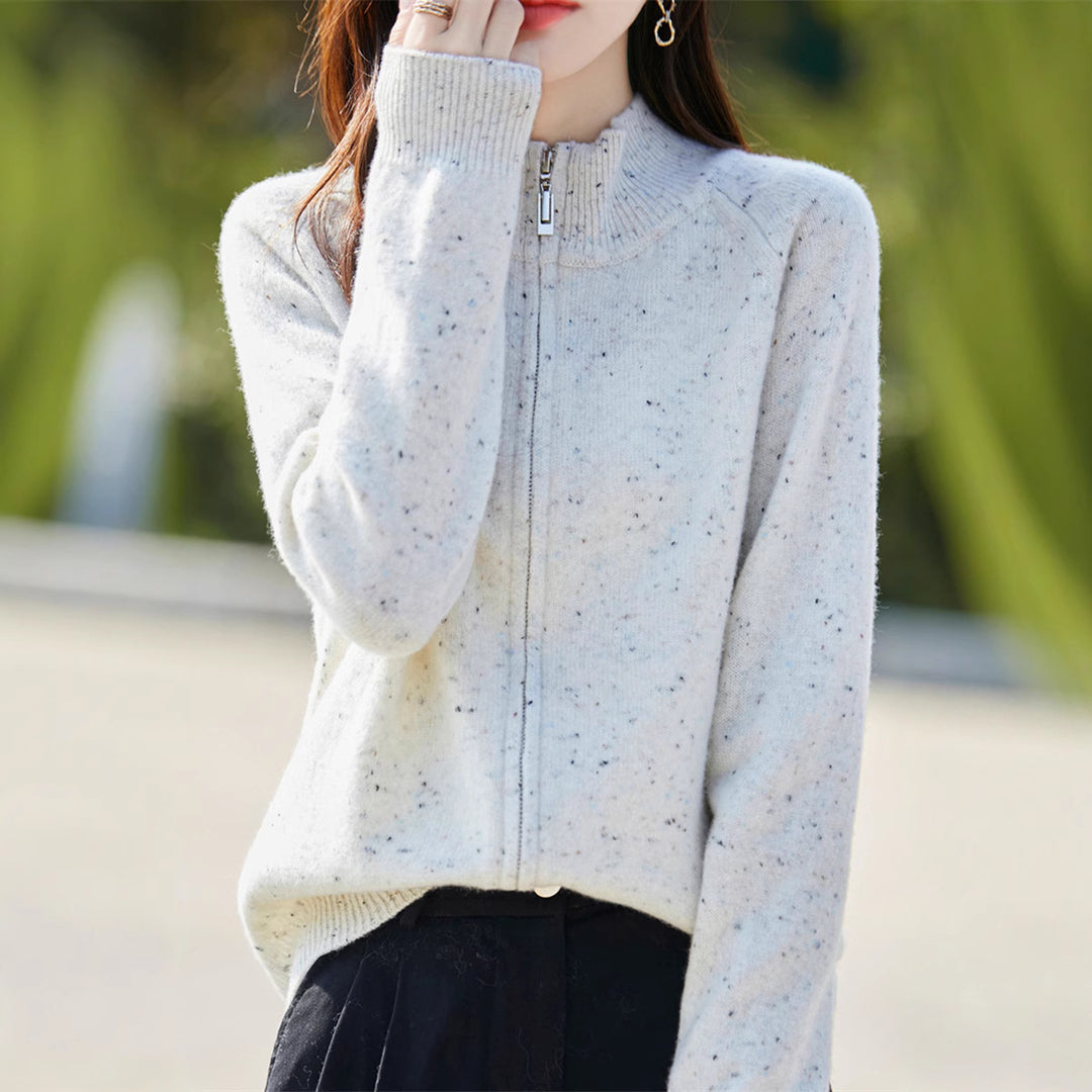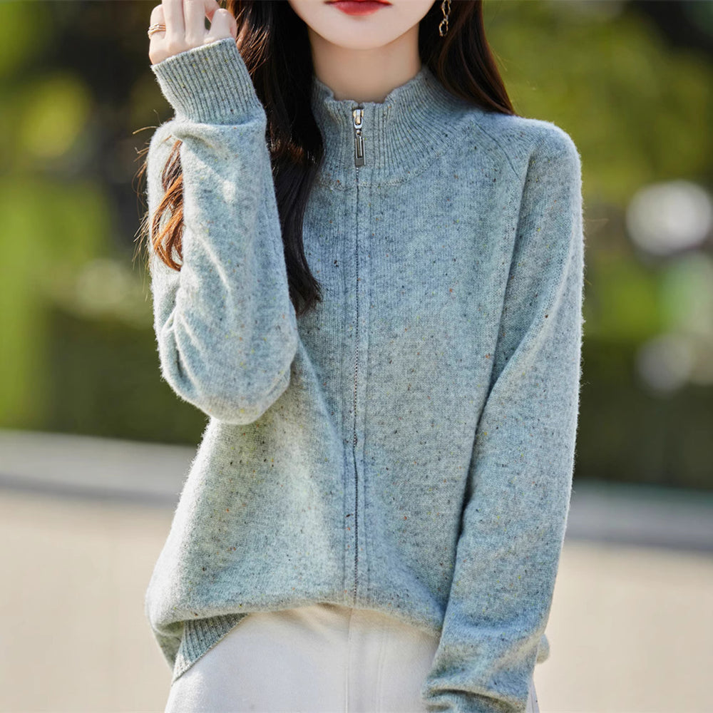 Dame cardigan med høyhalset glidelås og koselig materiale Skjora