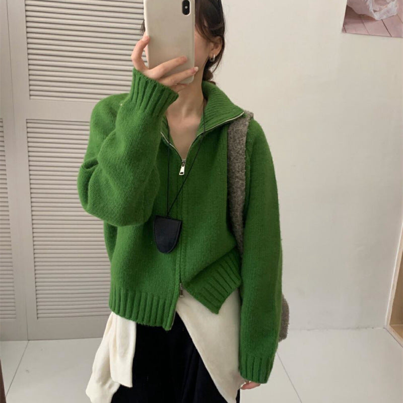 Dame cardigan med høy krage og praktisk glidelås Skjora