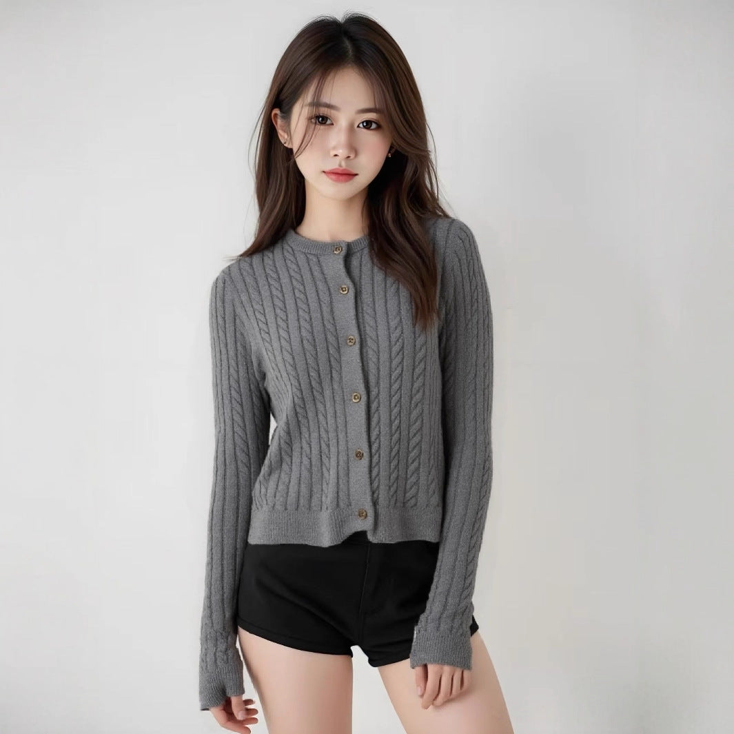 Dame cardigan med høy kvalitet kabelmønster og blanke knapper Skjora