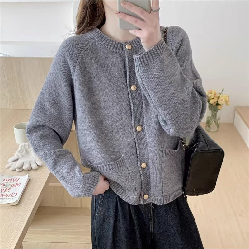 Dame cardigan med høy kvalitet strikketekstur og praktiske lommer Skjora