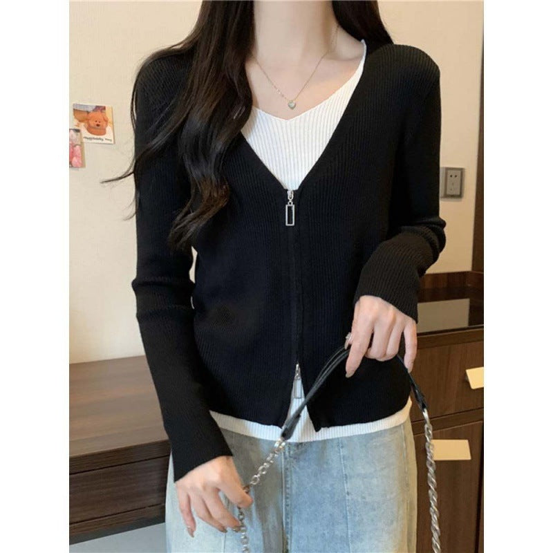 Dame cardigan med høy-kvalitet stoff og moderne glidelås Skjora