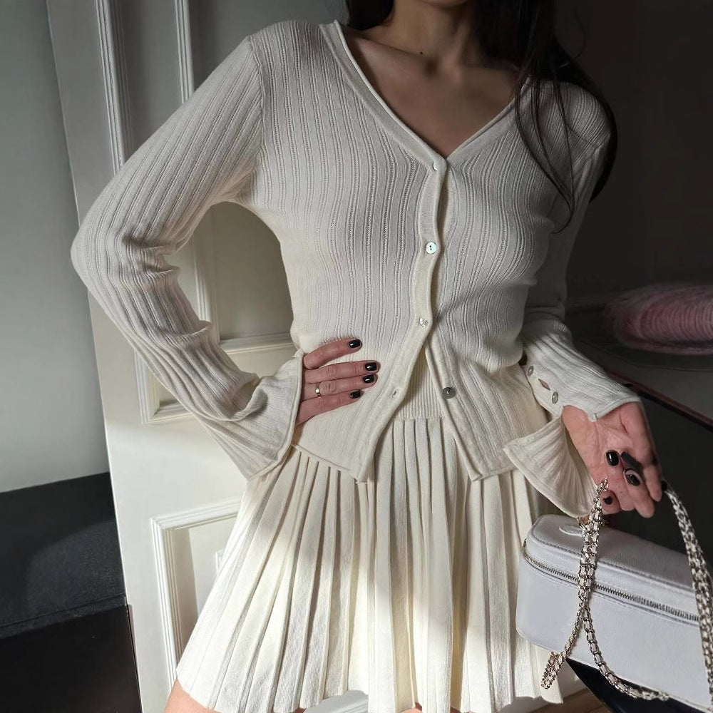 Dame cardigan med fint ribbmønster og ermeknapp Skjora