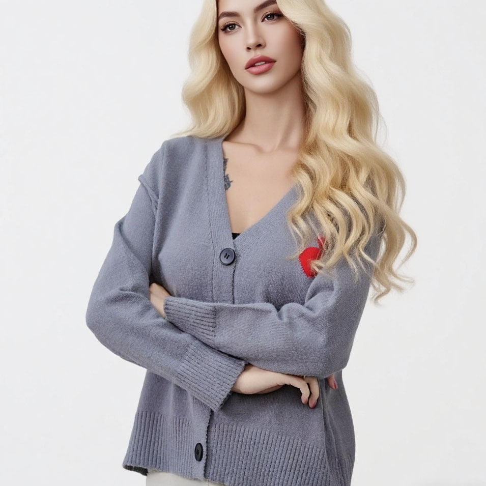 Dame cardigan med hjertebroderi og mykt materiale Skjora