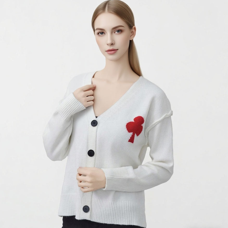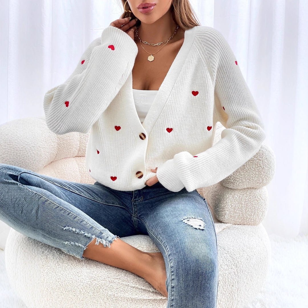 Dame cardigan med hjerteapplikasjoner og knappelukking Skjora