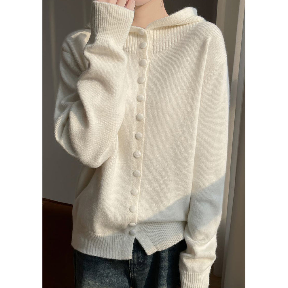 Dame cardigan med hette og dekorative knappdetaljer Skjora