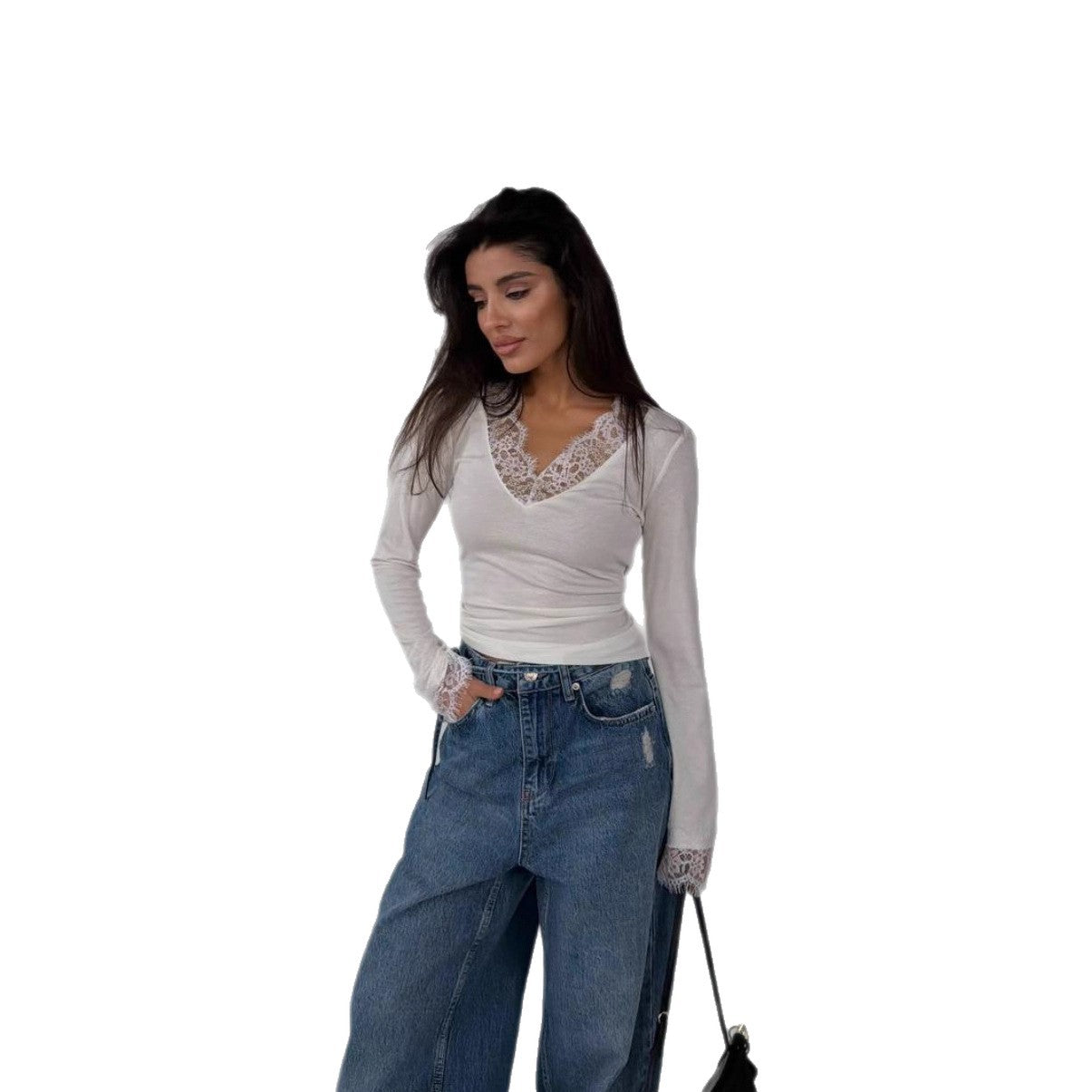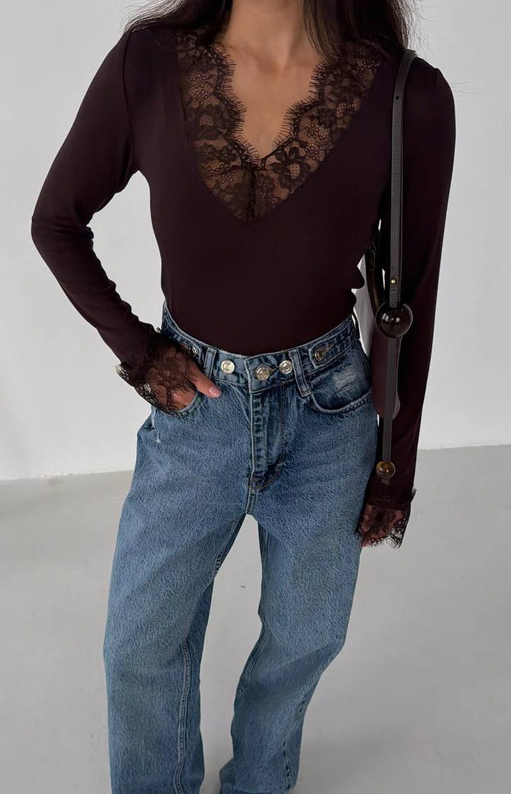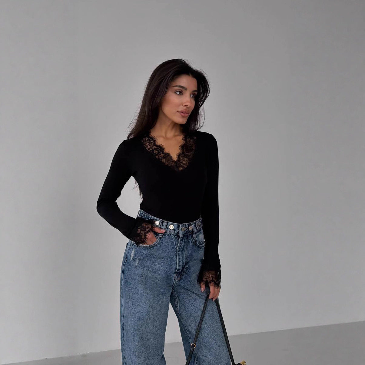 Delikat blonder: Den attraktive blonder trimmen ved V-hals og på ermene gir antrekket et feminint preg, ideelt for spesielle anledninger.