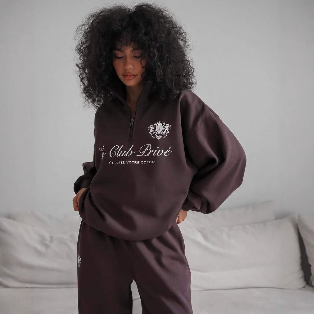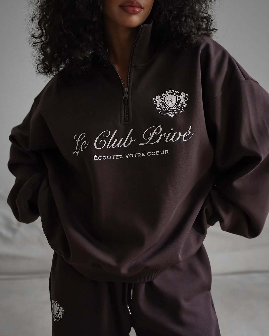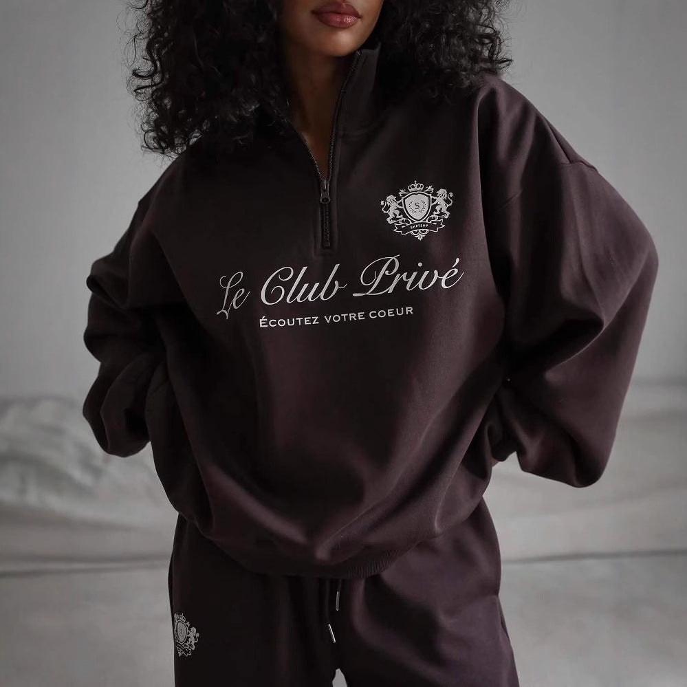 Eksklusiv print: Den stilige teksten "Le Club Privé" tilfører et elegant preg til designet, perfekt for moteinteresserte kvinner.