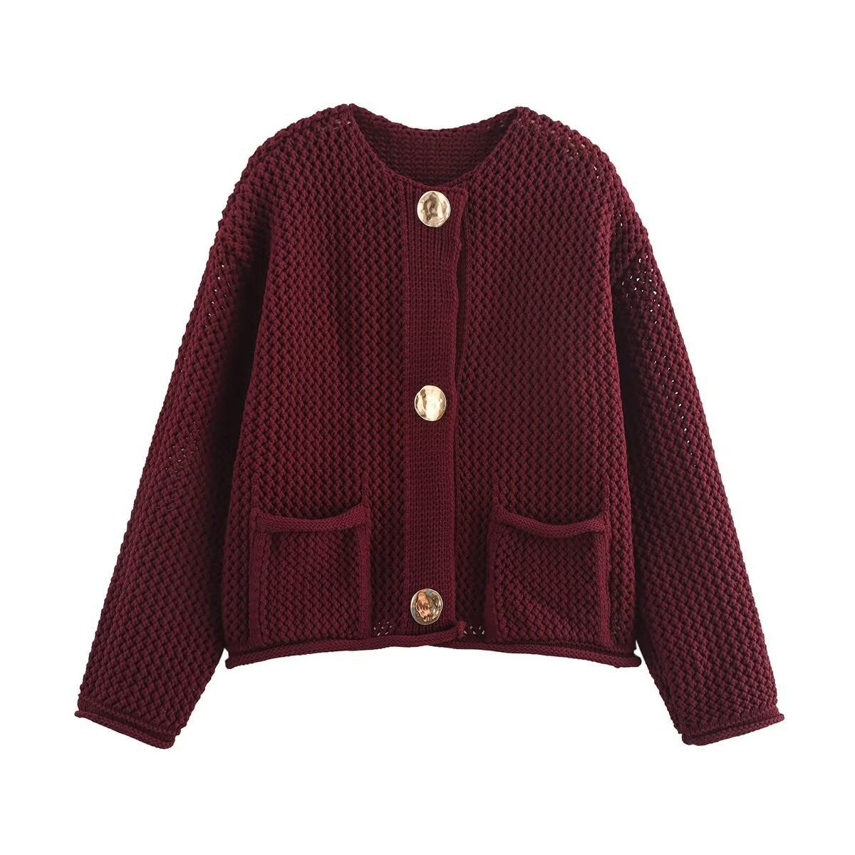 Oppdag vår stilige damecardigan, som ikke bare er moteriktig, men også ekstremt komfortabel. Denne jakken er laget av et høykvalitets, teksturert stoff som gir en utmerket passform og varme. De fantastiske metallknappene gir et elegant preg til jakken.