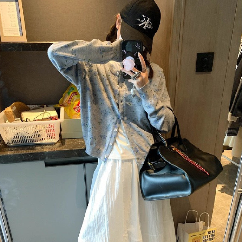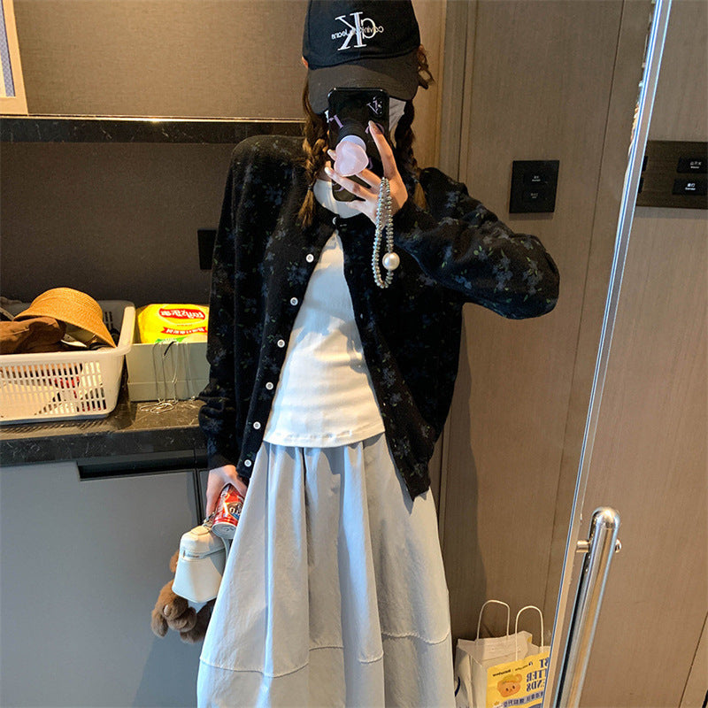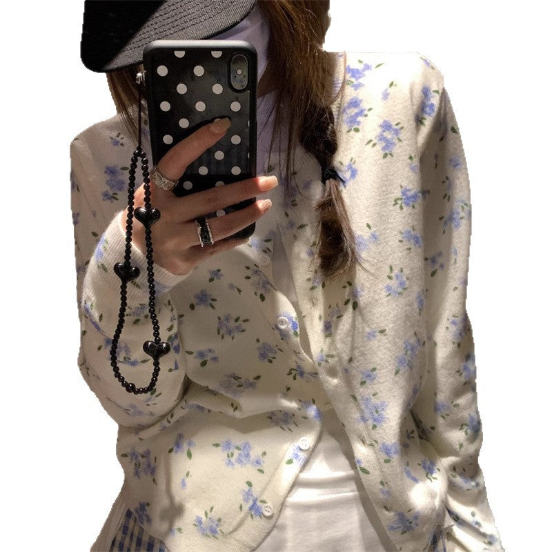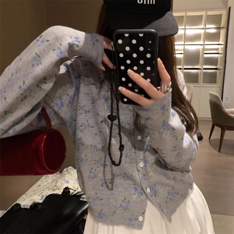 Dame cardigan med blomstermønster og knappeåpning Skjora