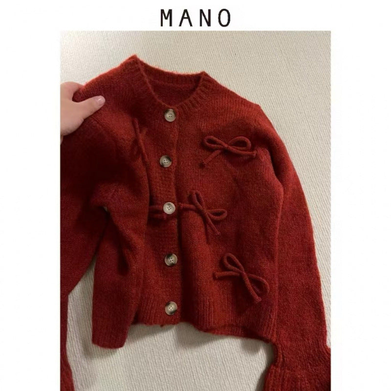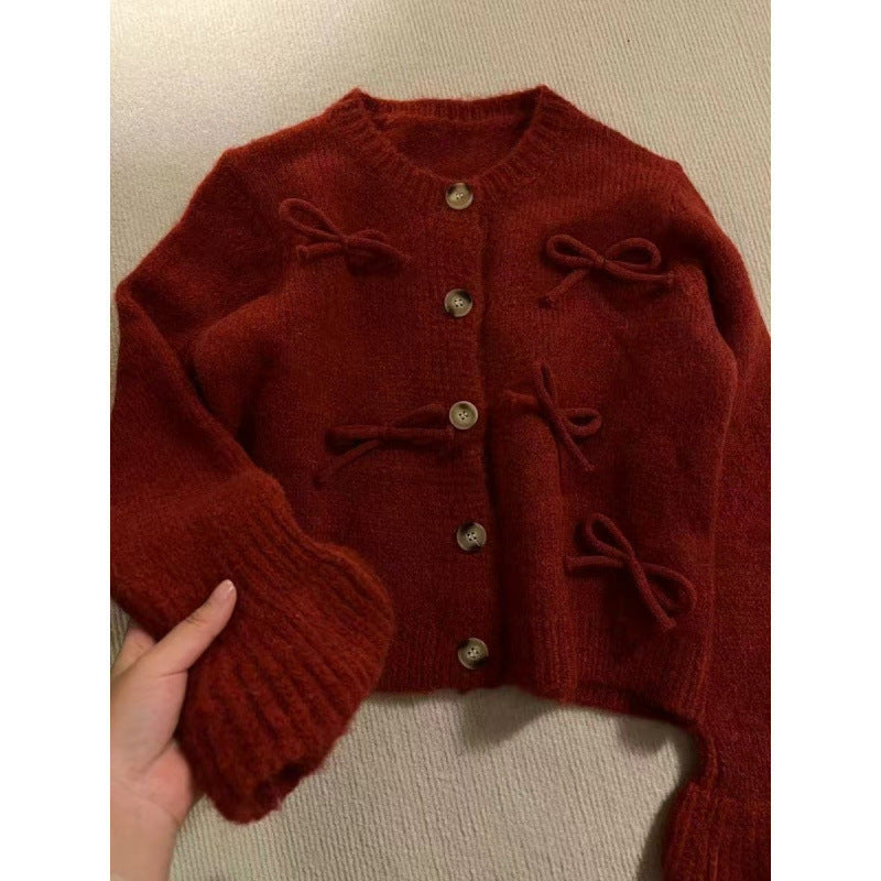 Dame cardigan med dekorative sløyfer på