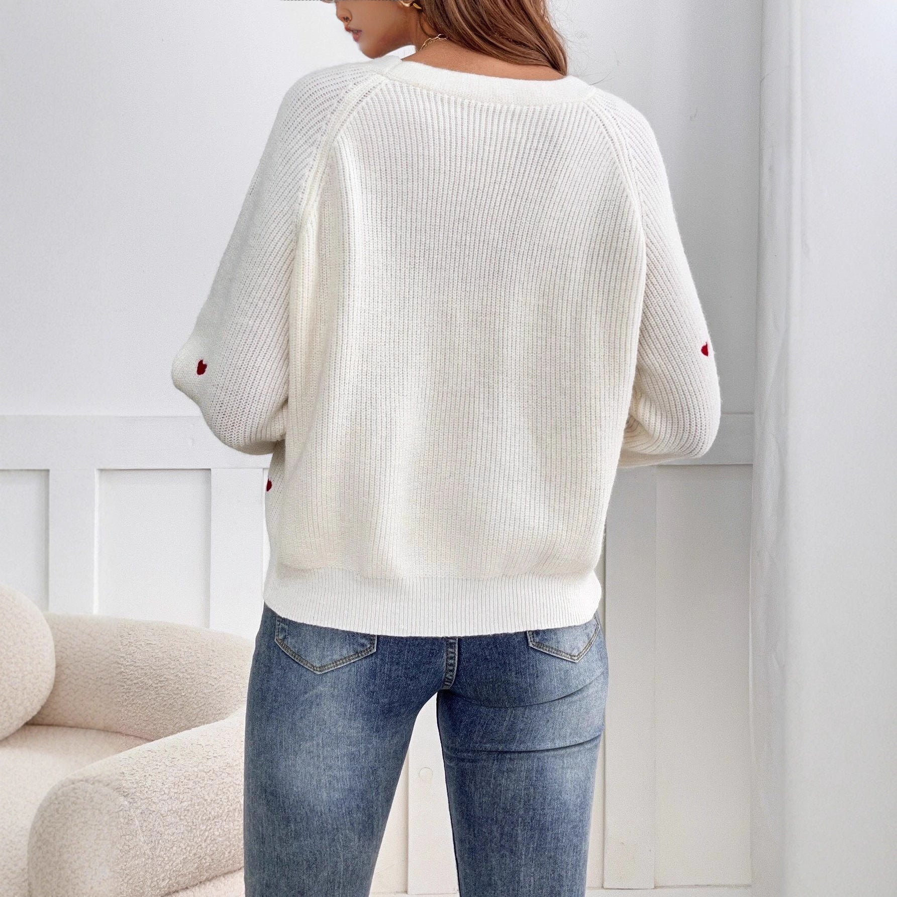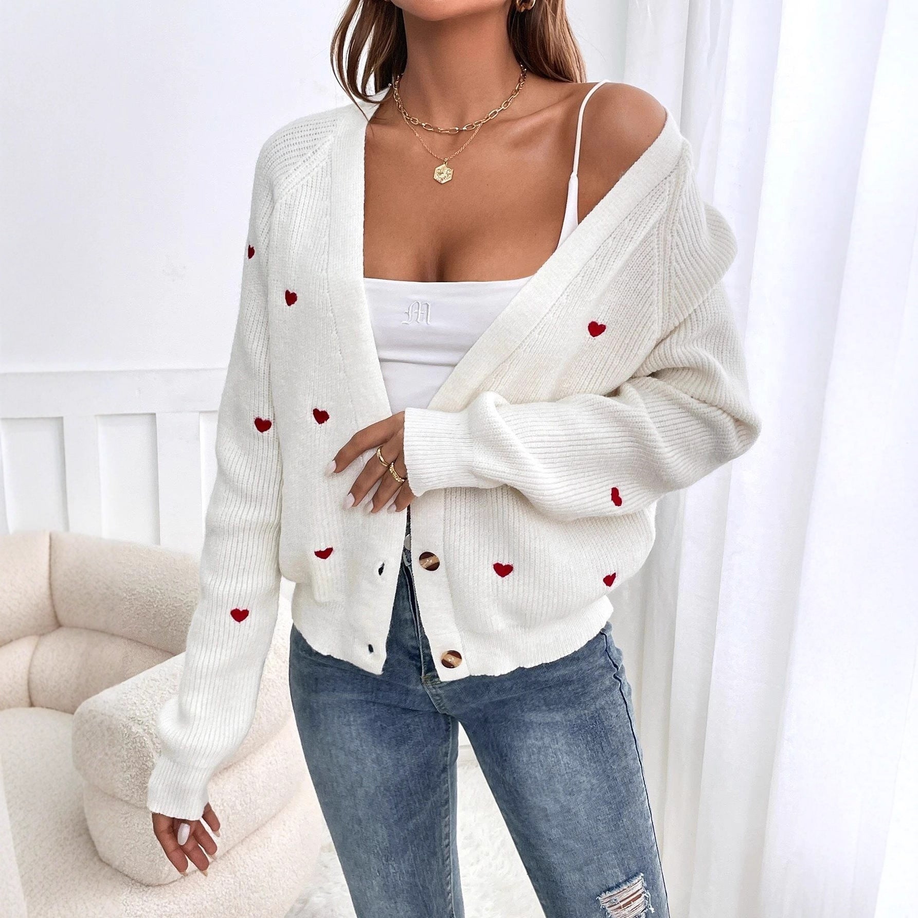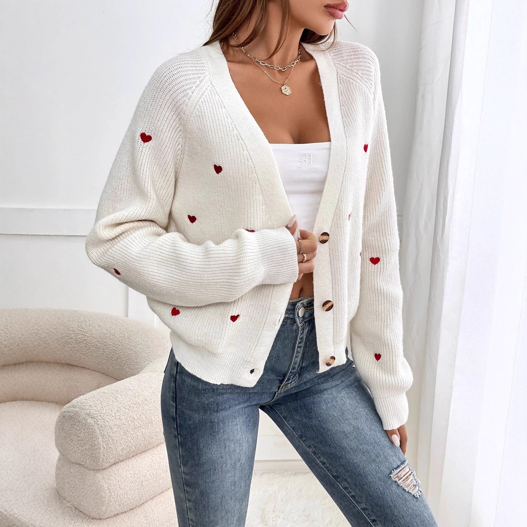 Dame cardigan med hjerteapplikasjoner og knappelukking Skjora