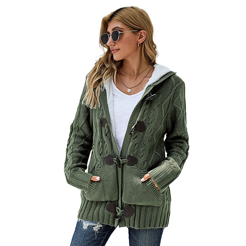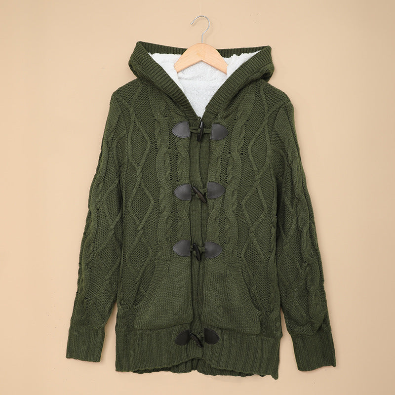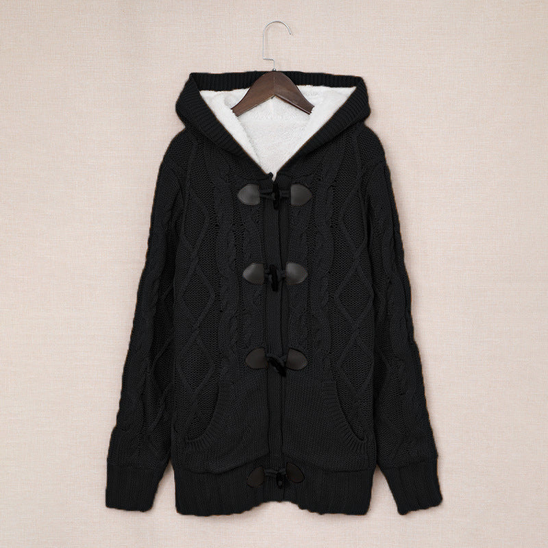 • Unik Design: Med intrikate kabelmønstre og elegante knapper, blir denne jakken et blikkfang i garderoben din.