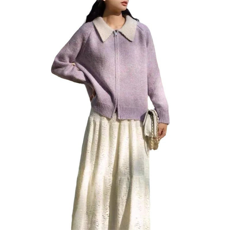 Dame cardigan med høy krage og asymmetrisk snitt Skjora