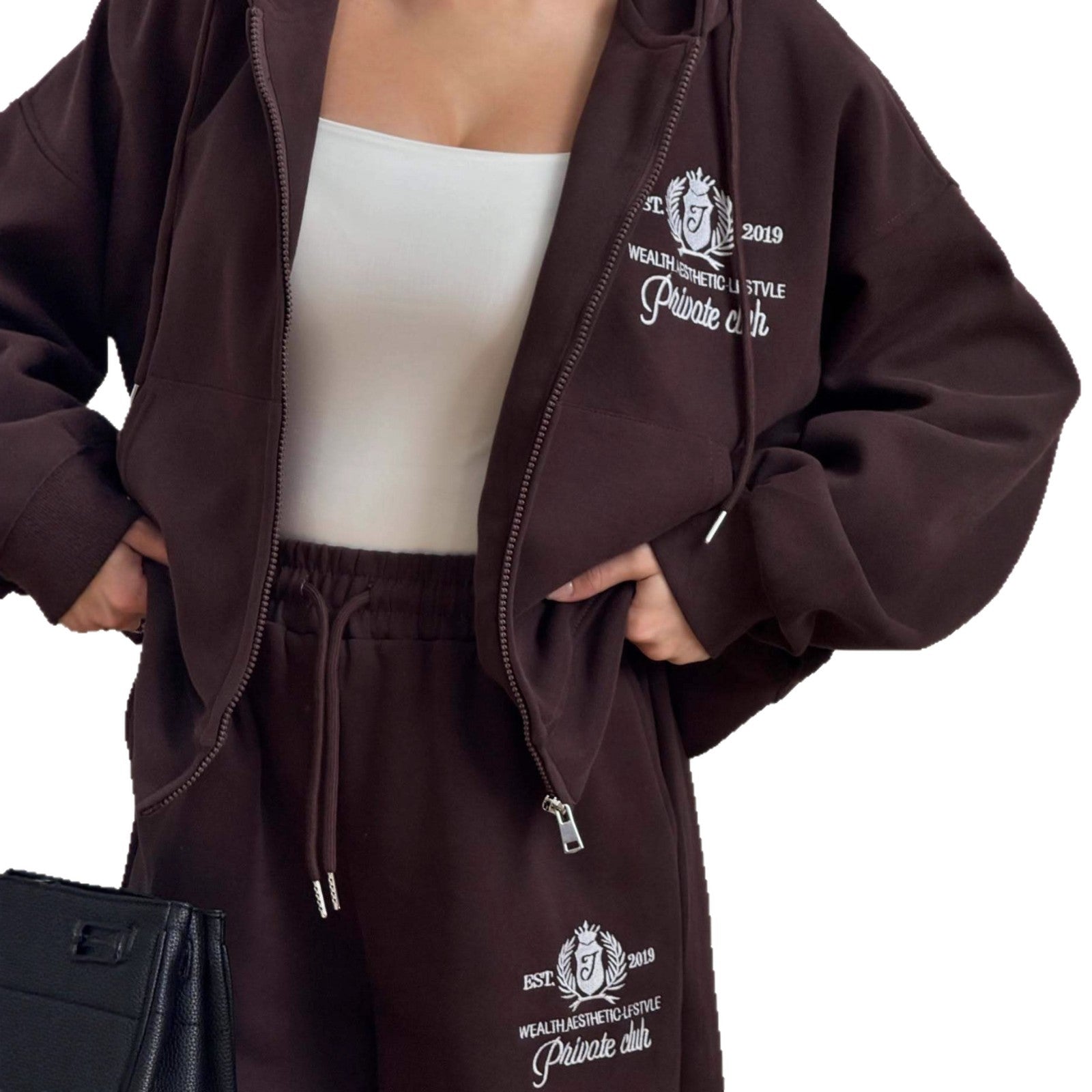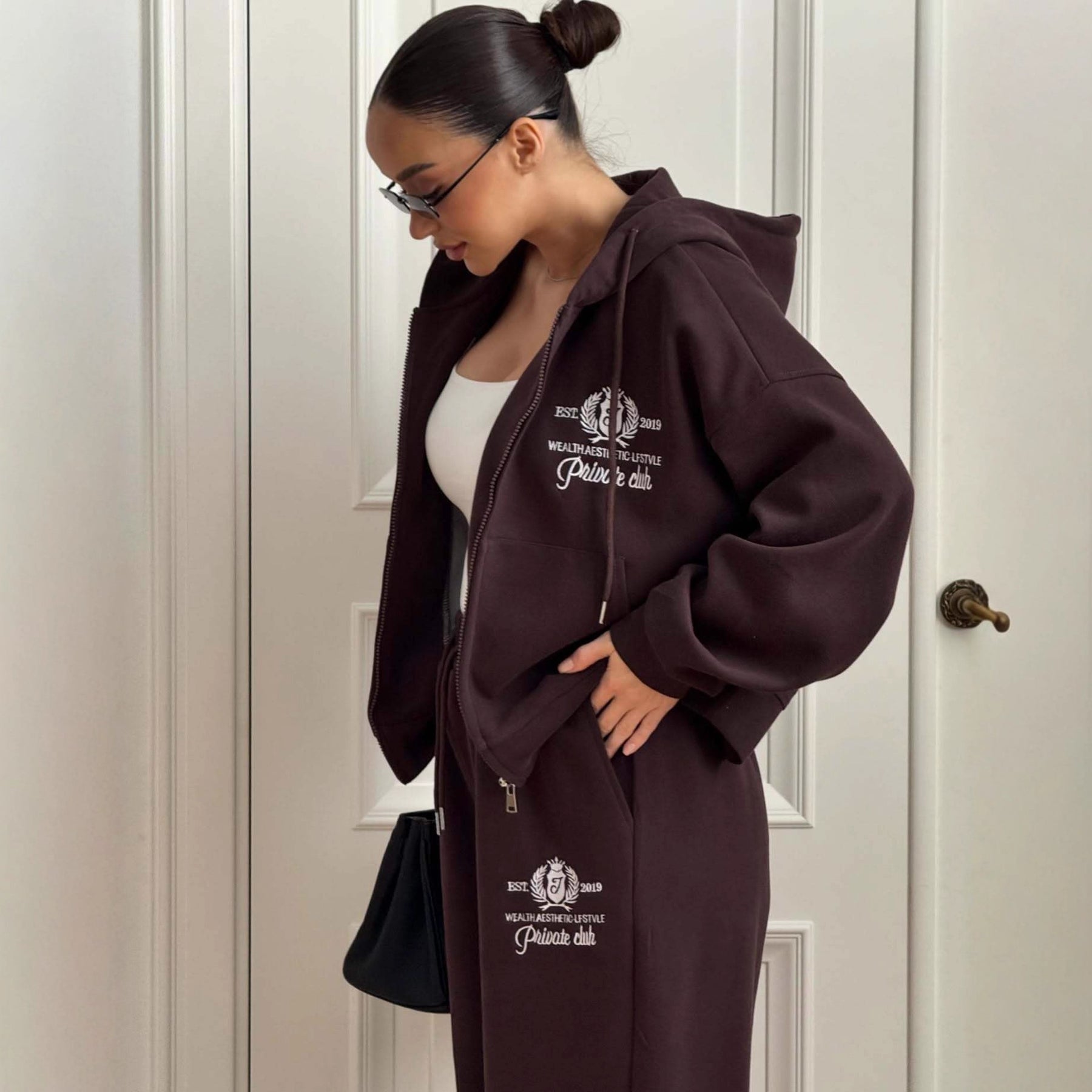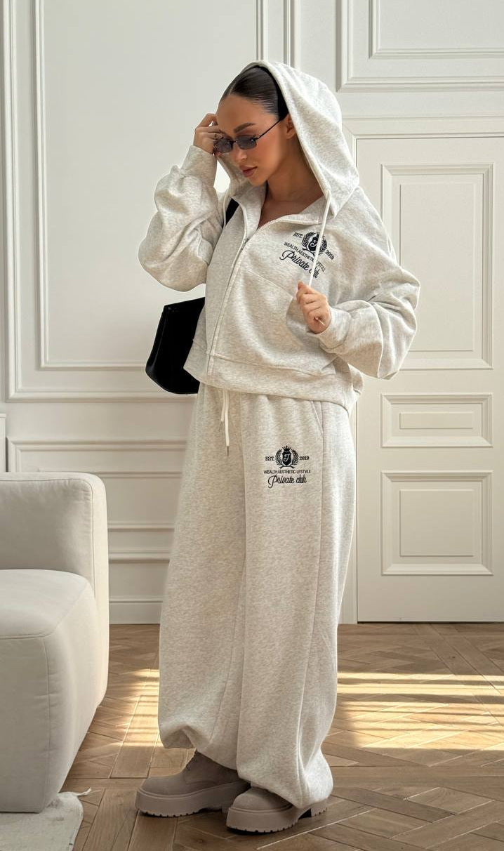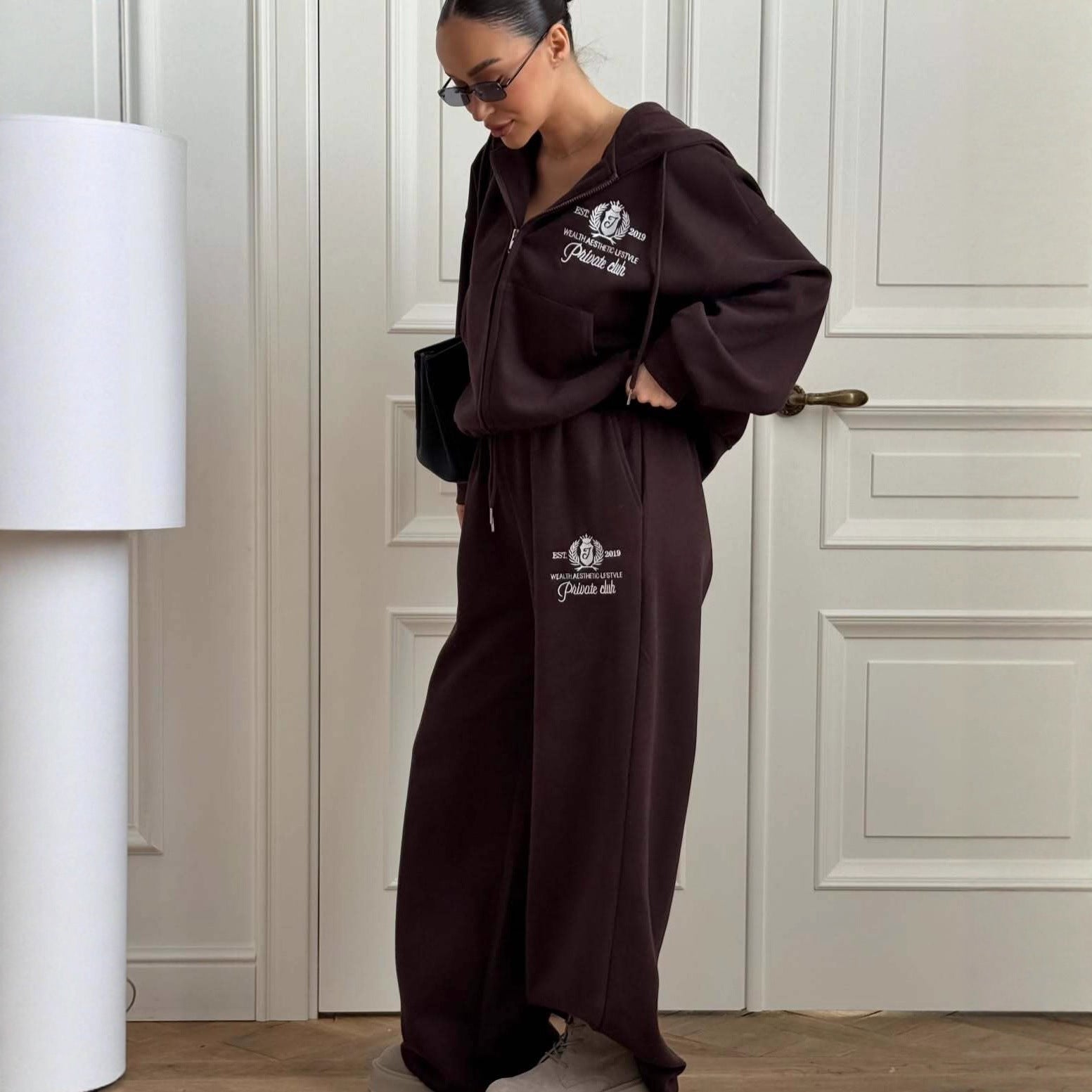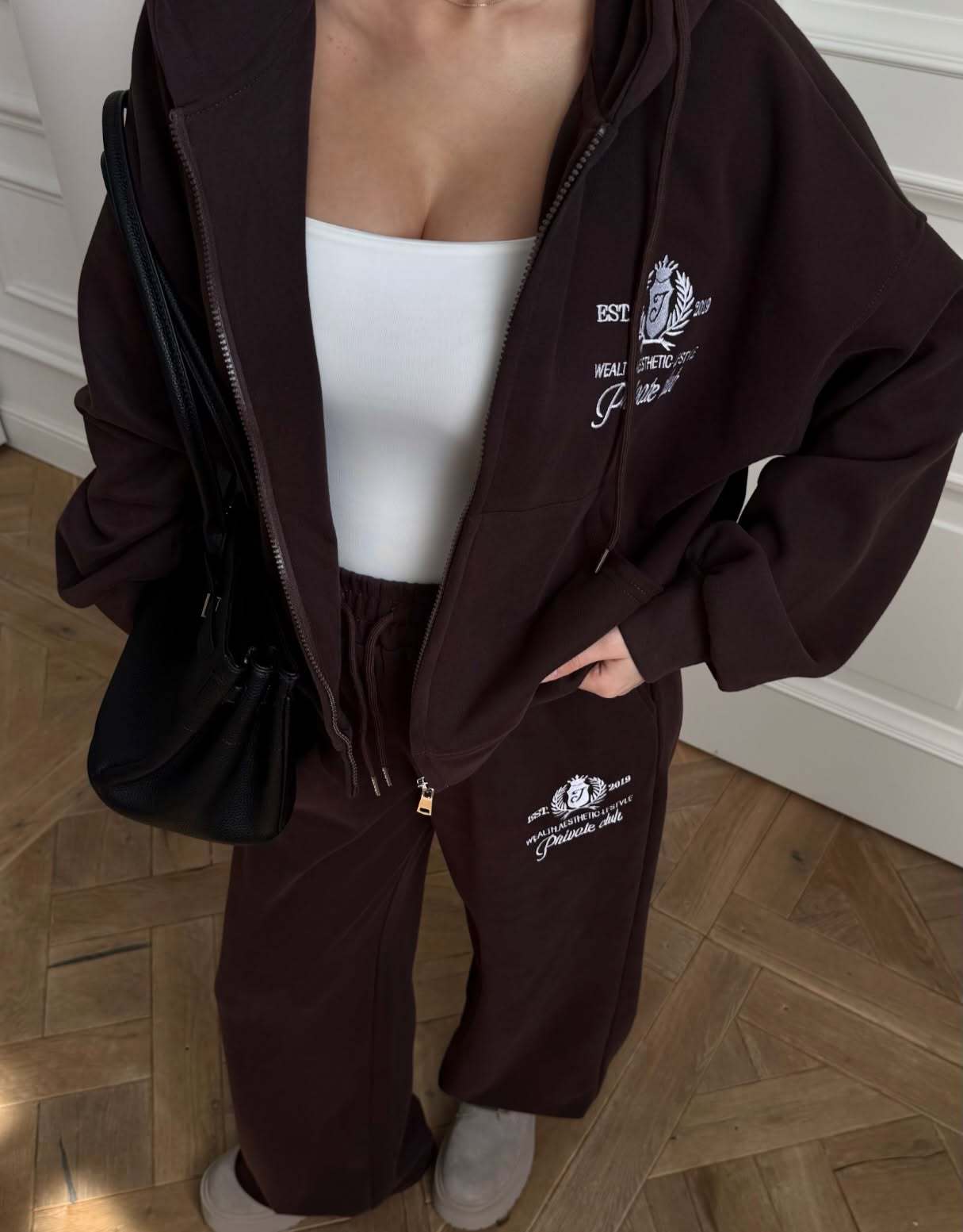 Oppdag vårt elegante og komfortable sportsett, som kombinerer en uformell cropped hettegenser og vide joggebukser. Dette settet er designet for kvinner som setter pris på både stil og komfort i sitt hverdagsuttrykk.
