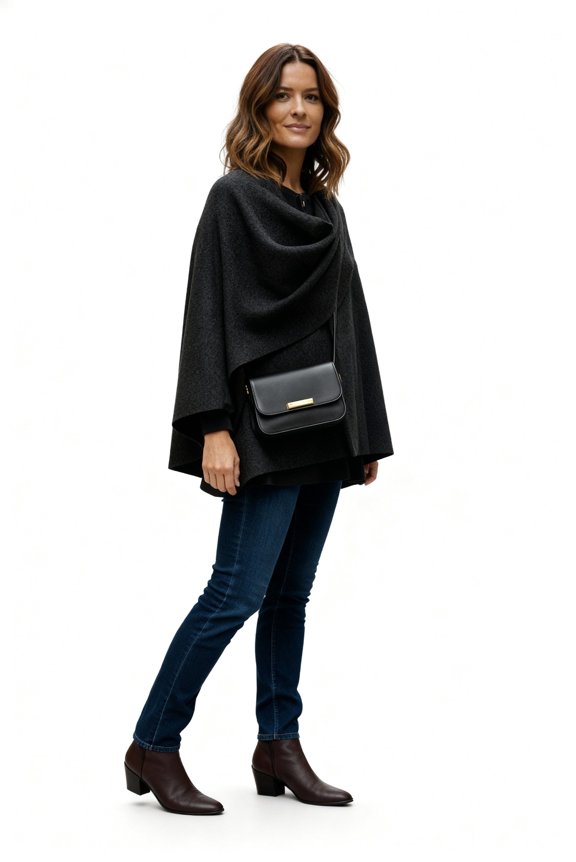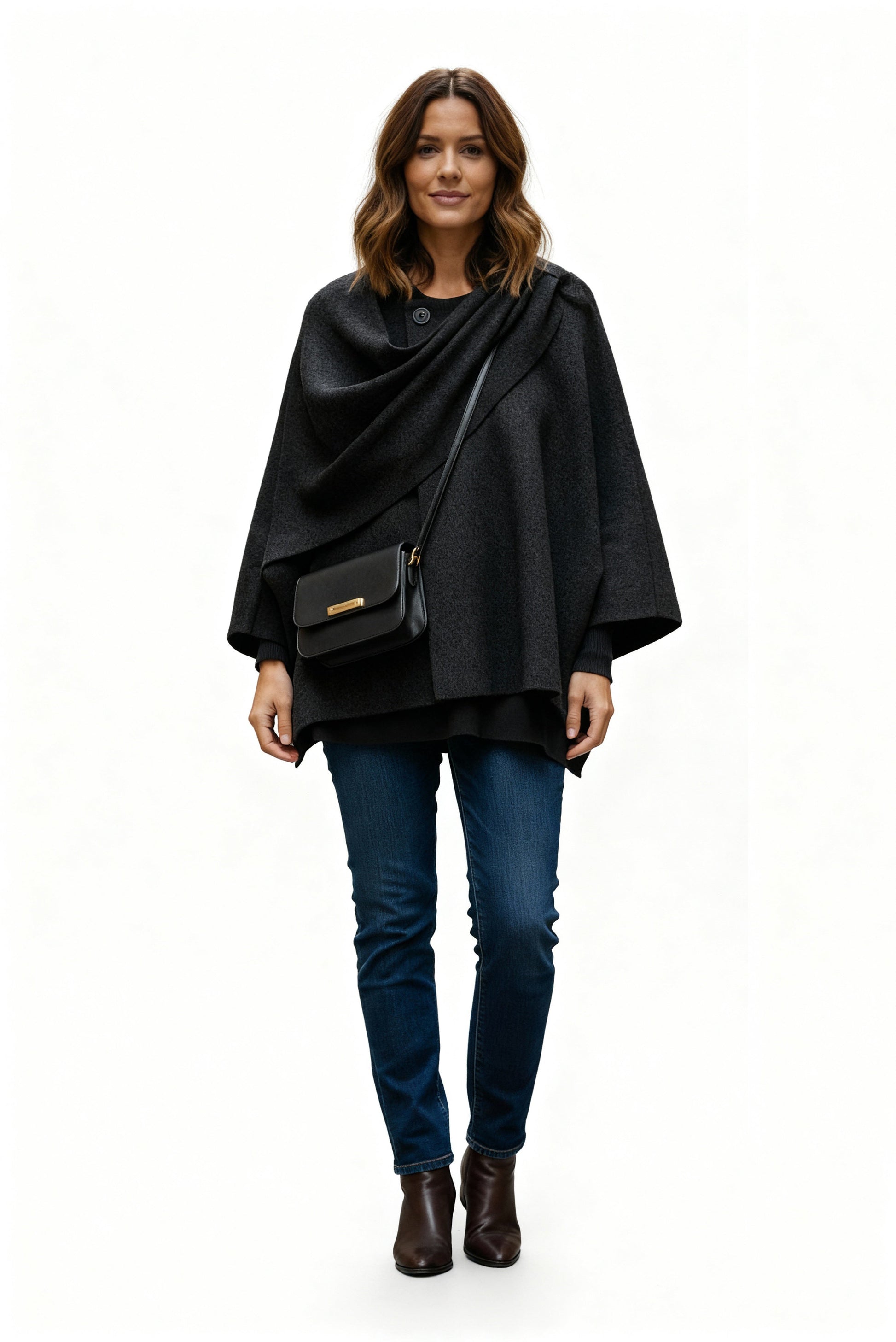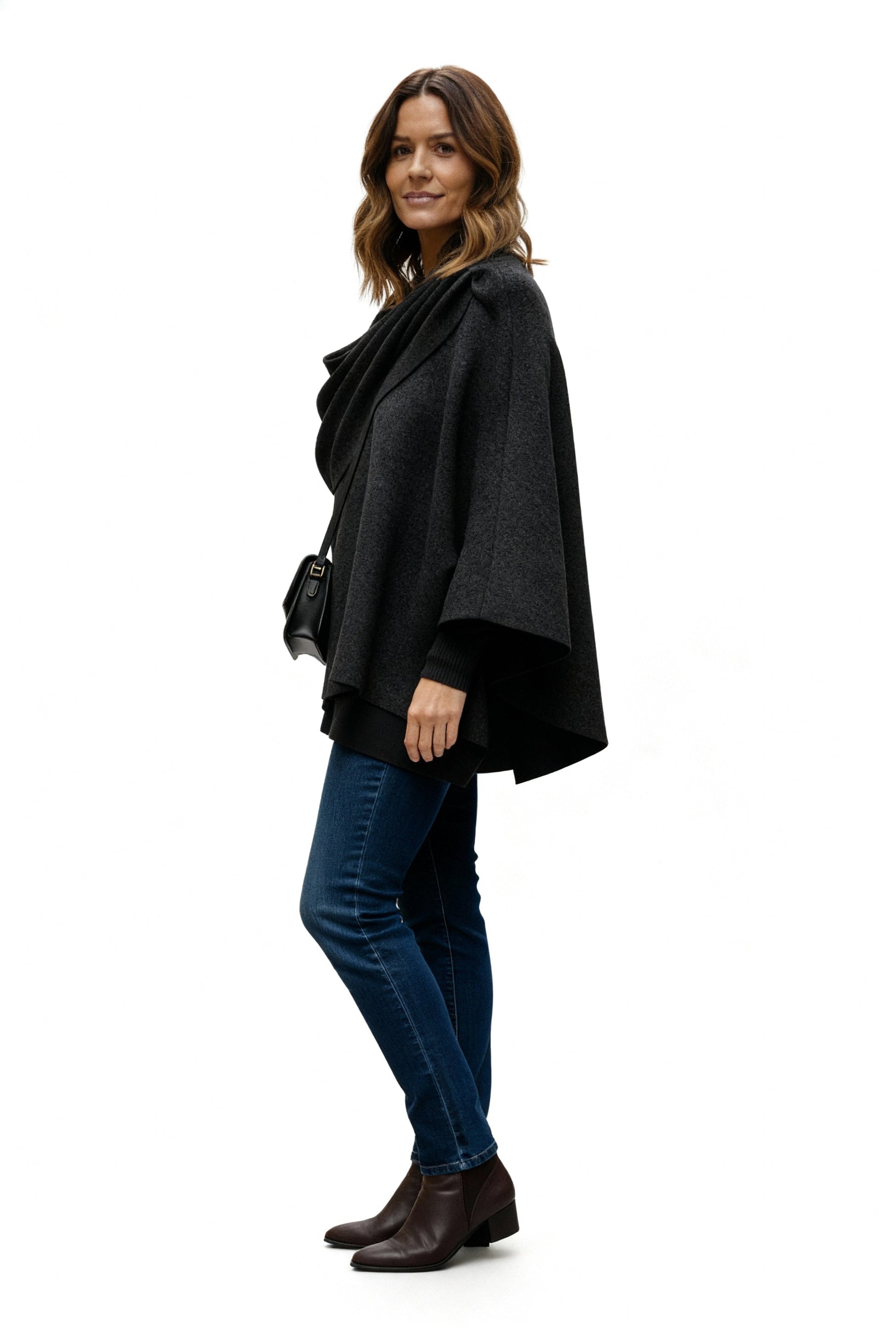 ✅Omgiv deg med luksus: Bedelia Cape Mantel er laget av førsteklasses, myke stoffer som faller elegant og gir et eksklusivt preg til ethvert utseende. Det unike capedesignet gir ekstra dekning og varme uten å virke klumpete, og gjør det til et allsidig tilskudd til garderoben din. Nyt en koselig og samtidig stilfull følelse som er perfekt for enhver årstid.